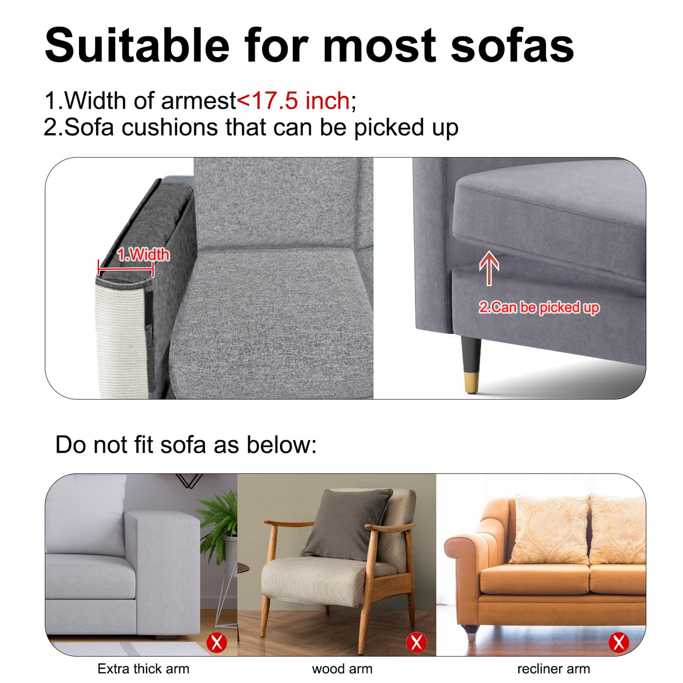 ???Installation Condition?For our cat scratch couch protector is not for every type sofa please ensure if your sofa can use it before you place the order.To apply the protector of sofa meet three conditions:1.The sofa can use leg ties; 2.Thickness of sofa armrest is within 17.5 inches;3.The side area of sofa is at least 19.7