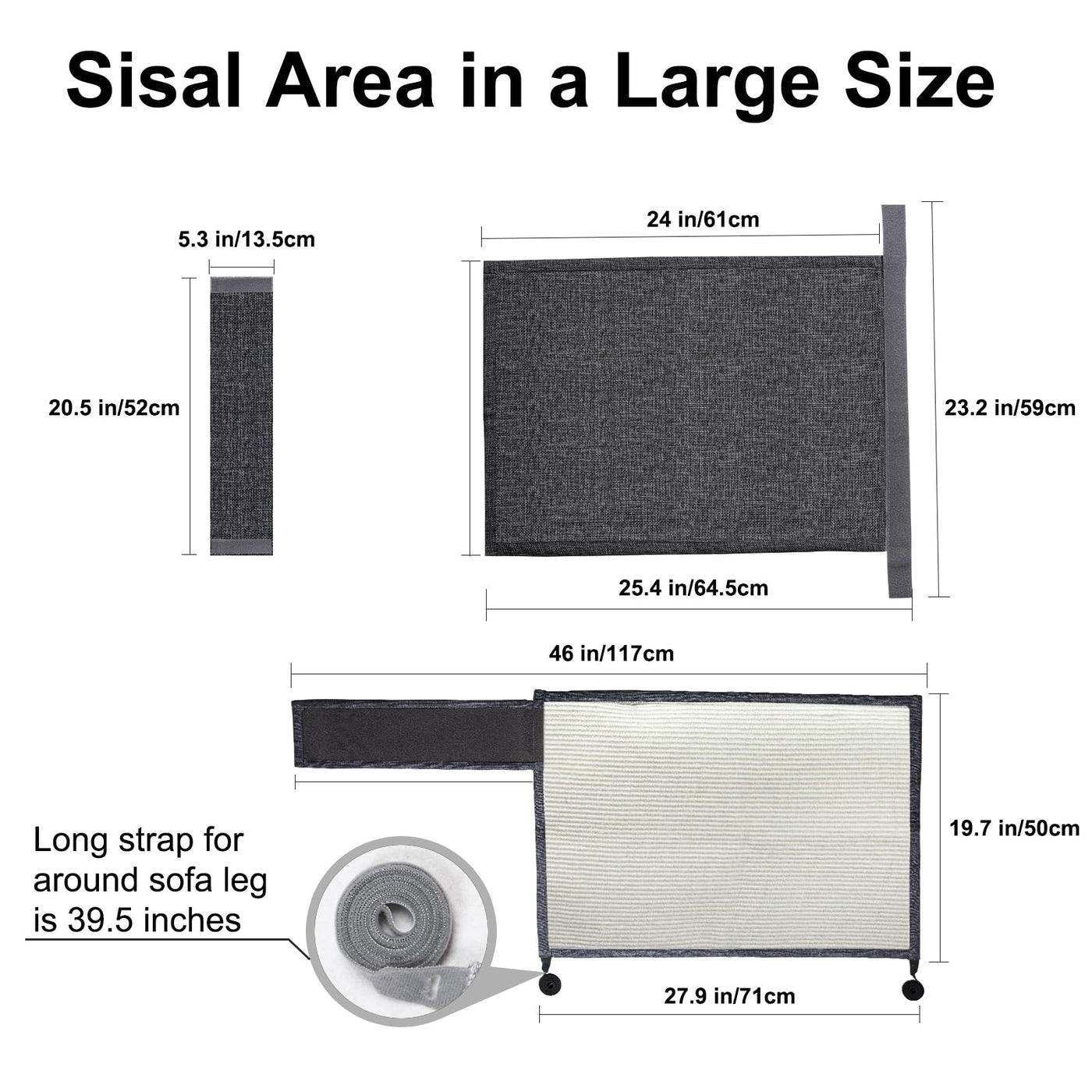 ???Great Protection?The size of the pet scratch pad is 27.9''L*19.7''W which is larger than usual.Large size give your sofa/couch a full protection.Protect your furniture from cat scratching and let your cat enjoy scratching.Also you do not worry about the scratches any longer even if you are not home.