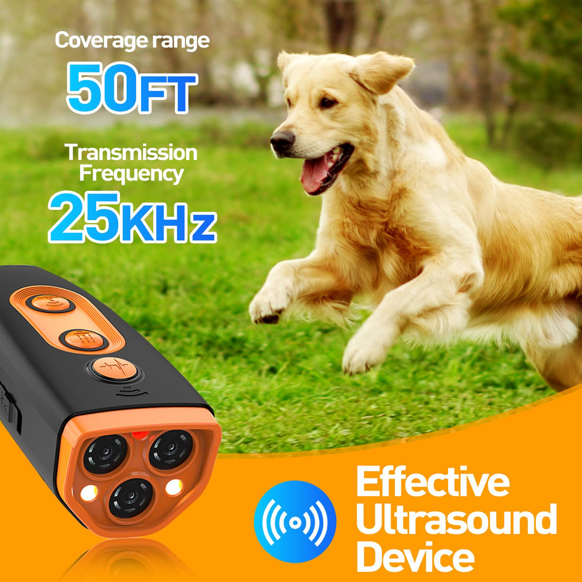 2025 Best Anti Barking Device,Dog Barking Deterrent Devices,Rechargeable Ultrasonic Dog Trainer,50 Ft Effective,Safe For Human & Dogs,3 Modes & Led Light Dog Bark Deterrent Devices. Apsaras Upgraded Ultrasonic Dog Bark Deterrent Device Features A Durable, Sleek Casing With An Appealing Design. Equipped With An Infrared Detector, Led Flashing Light, And Ultrasonic Probe, It Effectively Addresses Unwanted Barking. The Device Offers Multi-Band Frequency Settings: 25Khz, 20Khz-26Khz Sweeping, And 24Khz-50Khz Sweeping, With A White Led Flashing Light (5Hz) To Stop Barking And Deter Aggressive Dogs. It Trains Your Dog While Keeping Others At Bay, Transmitting Sound Waves Up To 50 Feet. This Upgraded Model Is Suitable For Both Indoor And Outdoor Use, Offering A Humane Solution Without The Need For Shock Collars. It Comes With A Type-C Charging Cable, Fully Charging In Just 2-3 Hours And Providing Up To 180 Days Of Standby Time-Perfect For Travel And Outdoor Activities Without Worrying About Battery Life.