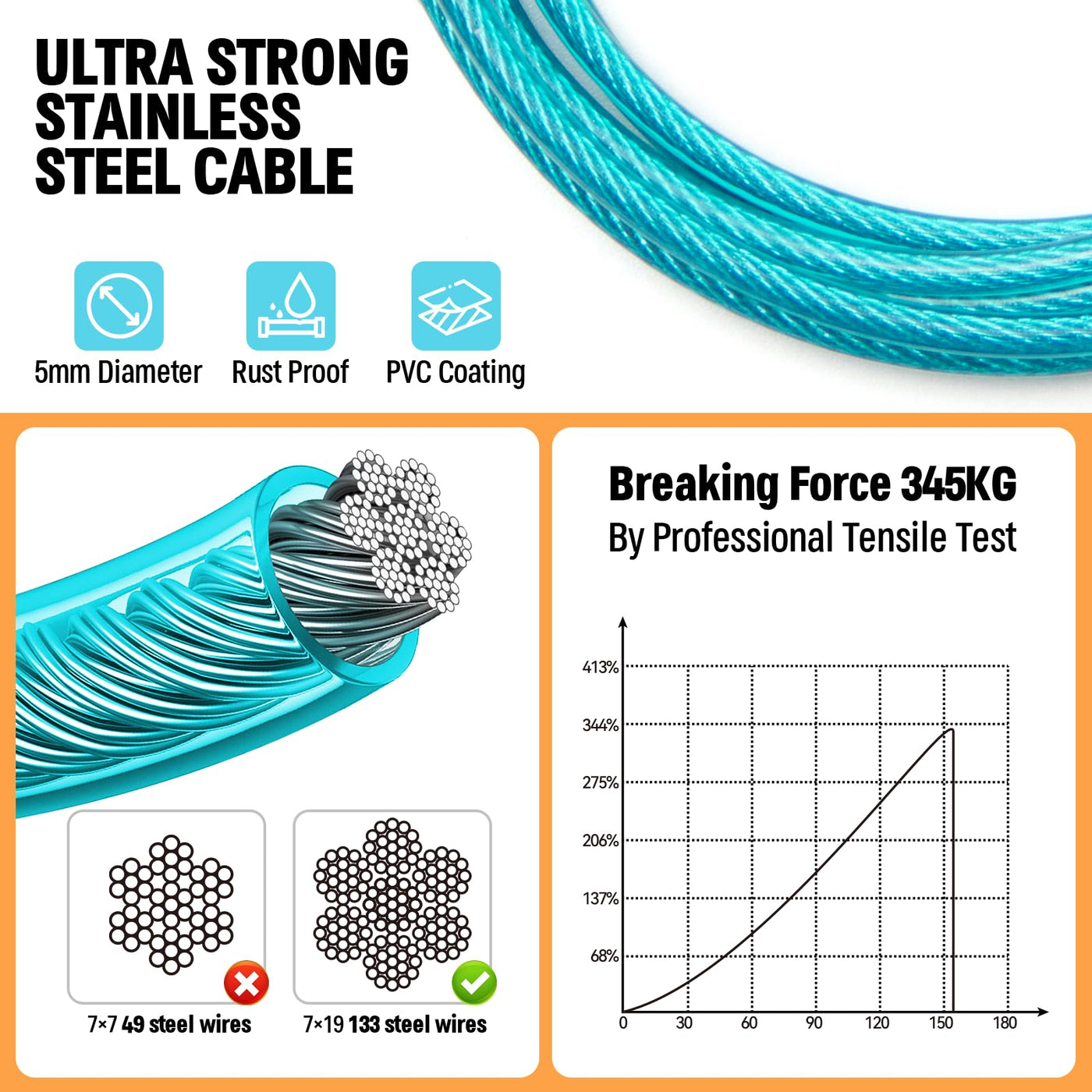 Introducing Our Upgraded Dog Runner For Your Yard - The Perfect Outdoor Dog Lead For Large Dogs Up To 250Lbs! Our Heavy-Duty Dog Trolley System Comes With A 50Ft Long Lead Cable And 2 Tie Out Cables Of 10Ft And 15Ft, Providing Ample Space For Your Furry Friend To Run And Play In The Backyard, At The Park, Or While Camping. This Reinforced And Durable Long Dog Leash Cable Is Designed To Is To Keep Runner Dogs Safe, Ensuring That They Are Securely Restrained And Unable To Escape, Ensuring The Safety And Comfort Of Your Pet. Our Long Dog Lead Is Made From Stainless Steel Wire That Is Chew-Resistant And Rust-Proof, Making It Perfect For Long-Term Use. The Pvc Coating Protects The Cable From Abrasion And Fading, Adding To Its Longevity. This Dog Zlip Line Aerial Run Is Easy To Set Up And Can Be Installed Between Two Sturdy Trees Or Posts. Take Your Furry Friend Along On Your Outdoor Adventures With Our Dog Trolley System. Make Your Dog Feel Free To Run While Sustaining Its Safety And Comfort With Our Outside Heavy Duty Long Dog Run Cable.