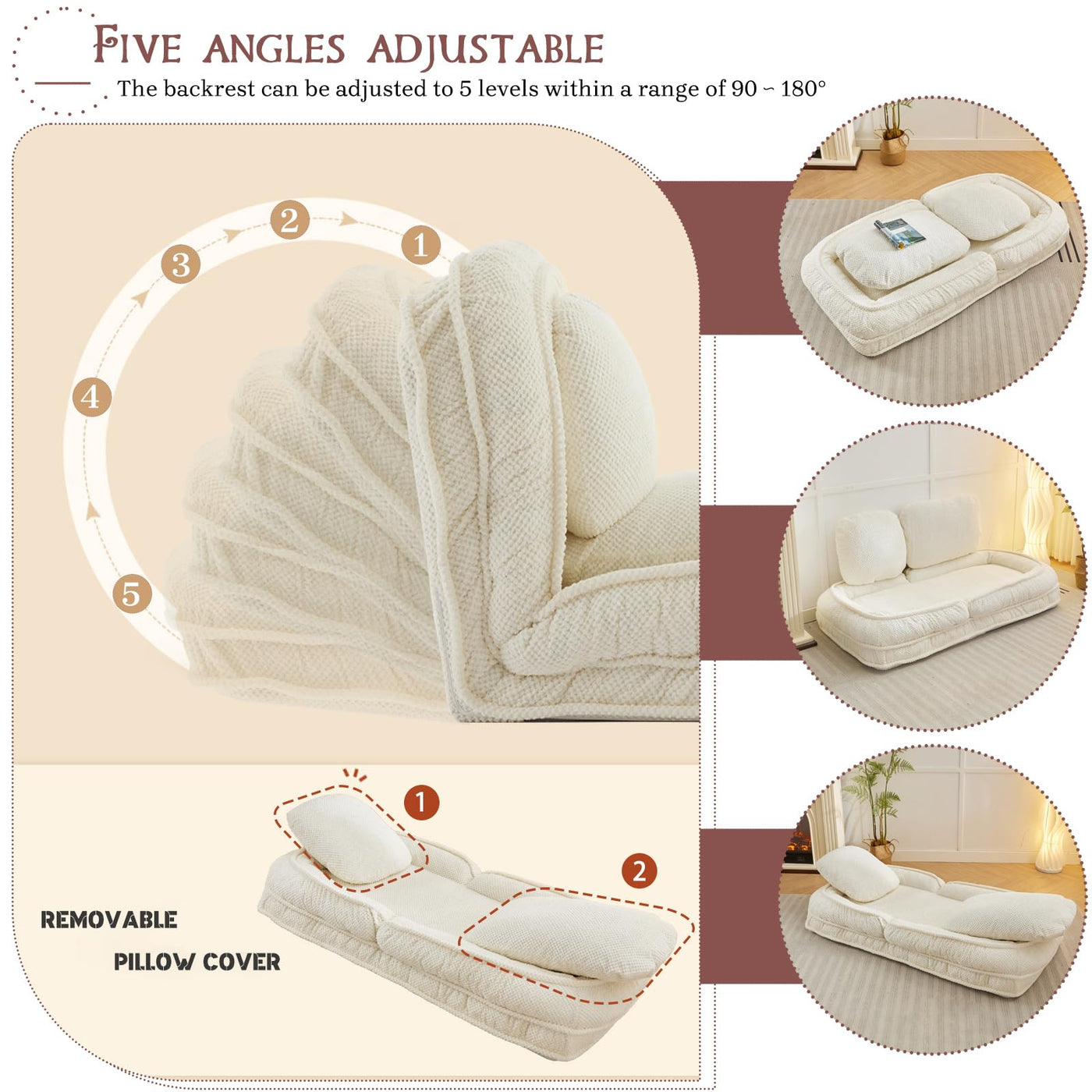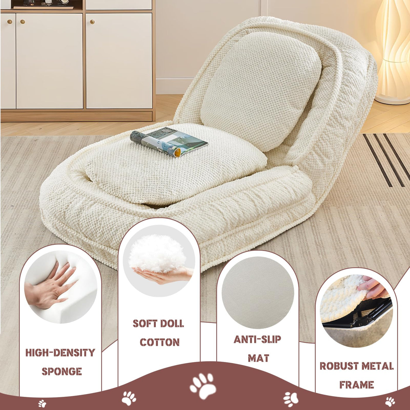 Upholstered Human Dog Bed For Adult & Pets, Convertible Lazy Sofa Bed With 5 Adjustable Position, Comfy Tatami Bean Bag Lounge C