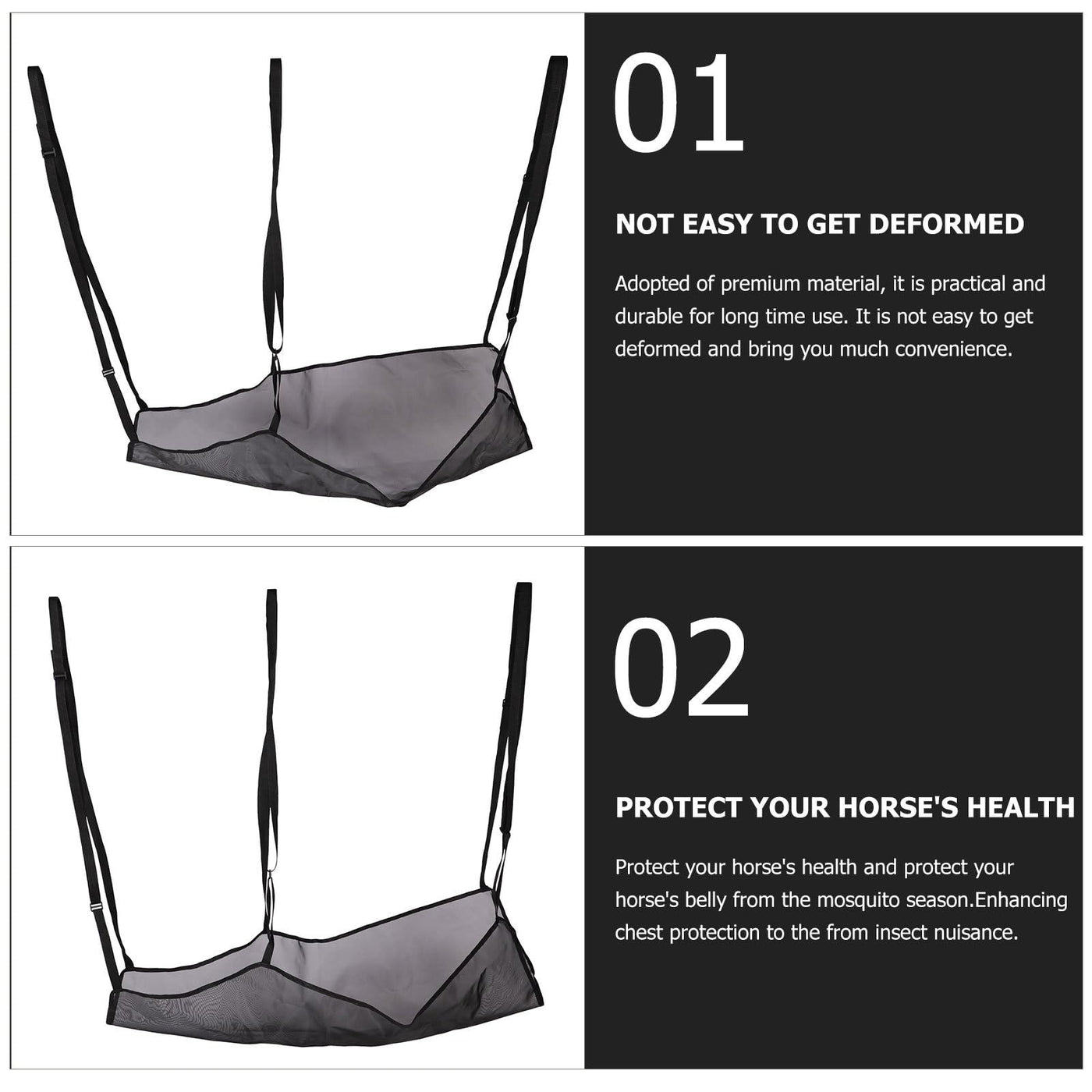 Package Include 1 x sheet Features -Color: Black Adjustable Mesh -Material: Mesh Horse Abdomen Protective Cover - Size: 120.00X69.00X0.10cm/47.16X27.12X0.04in UV Mesh - Replace old or broken sheet with a new one equestrian supplies. - Will not affect horse normal movement after putting it on Mesh for Horse Abdomen. - Adopt mesh material for durable use Belly Guard. - and breathable, for summer time protection Adjustable Fly Rug. - Can be given as a present to your horse owner family and friend Horse Belly Protective Cover.The horse belly protective cover is designed to provide protection for your horses abdomen.Made from breathable mesh fabric, it allows for adequate ventilation while shielding your horse from and potential scratches.Measuring 47.24 x 27.17 inches, this cover is adjustable to fit various horse sizes, making it a versatile accessory for any horse owner.This protective cover is perfect for use during summer months, ensuring your horse stays comfortable while outdoors.Whether youre at home or attending equestrian events, this cover can be a great addition to your horse care routine.The uv mesh material is safe and environmentally friendly, offering reliable protection against harmful sun rays.Ideal for family and friends who own horses, this belly guard can also be a thoughtful gift.It enhances your horses comfort while providing a barrier against flies and other nuisances.With its sleek black color, this cover is not only practical but also stylish, ensuring your horse looks good while being protected.Invest in the horse belly protective cover for a blend of comfort and security for your horse.It is an essential part of equestrian supplies that every horse owner should consider, ensuring your beloved horse remains safe from bites and scratches.
