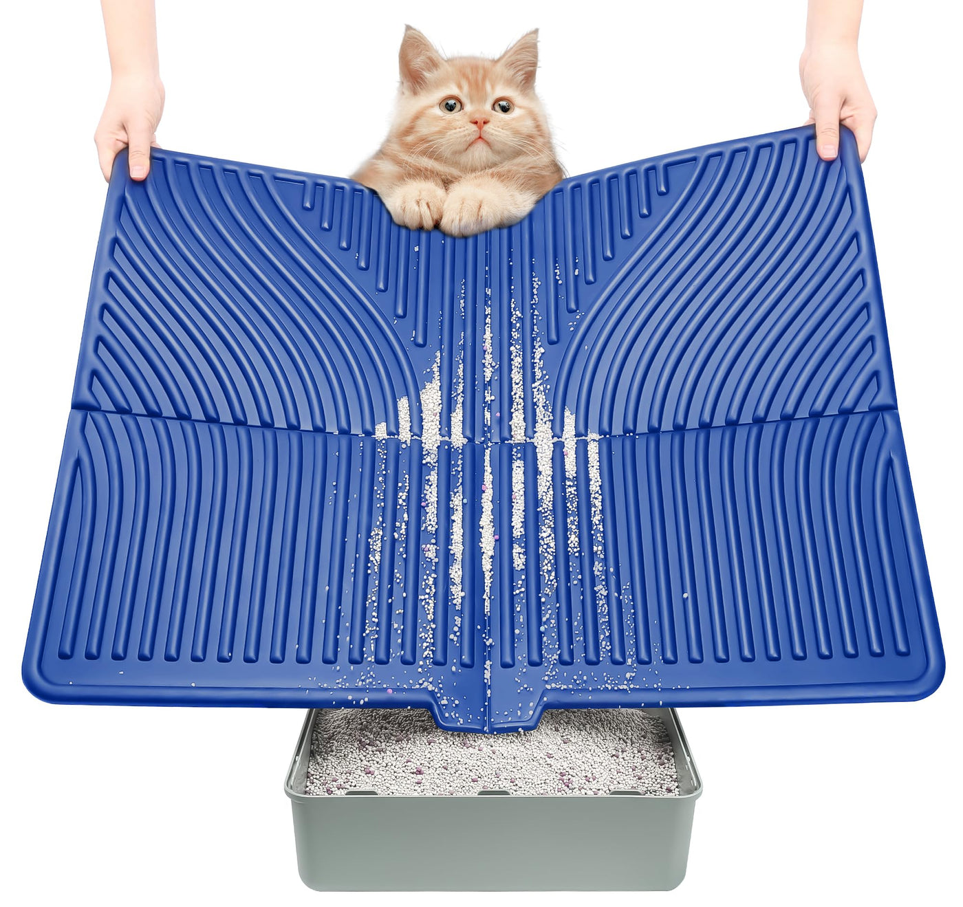 Upgraded Cat Litter Trapping Mat: This innovative cat litter mat is designed with an arch which can easily catch the falling litter from the cat's paws. Compared to the double-layer honeycomb design it is softer thinner and easier to clean. Just pick up this litter pad shake it gently and the litter will immediately fall into the litter box. Please note that if your cat has a habit of swallowing EVA foam material please use it carefully.