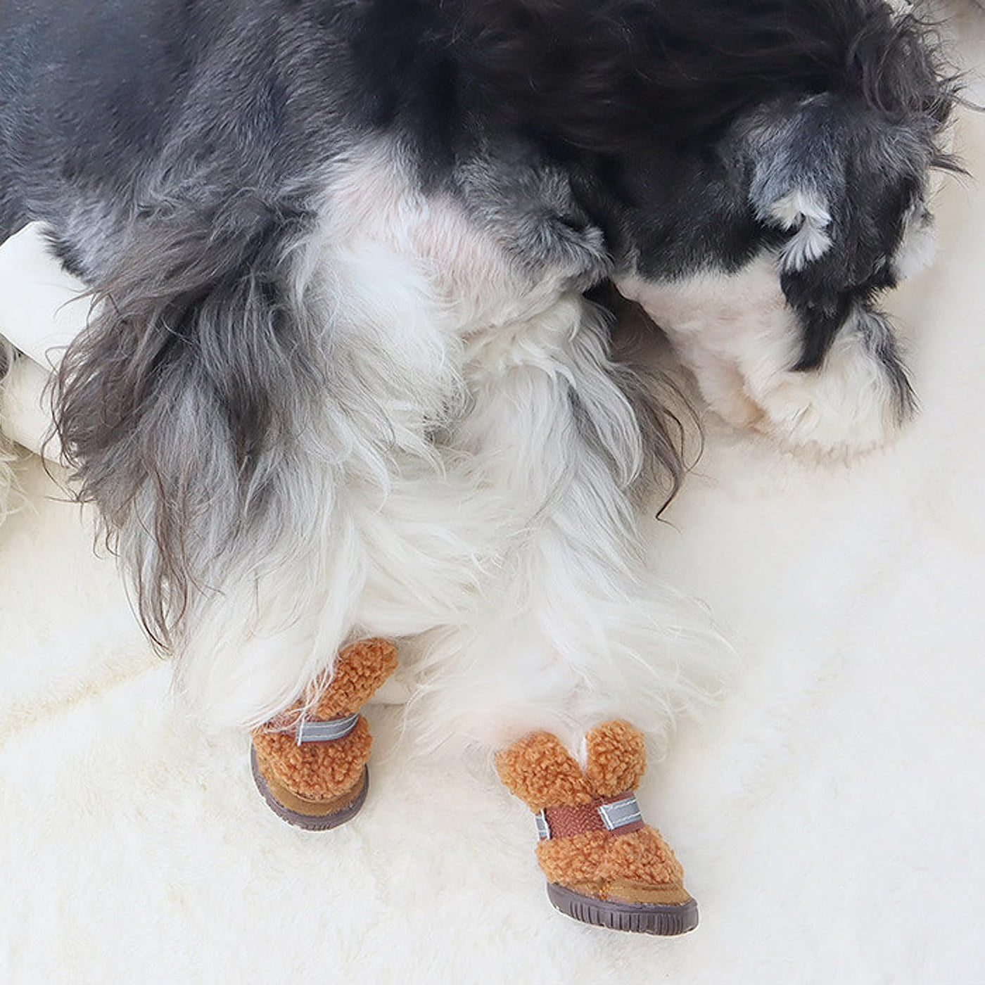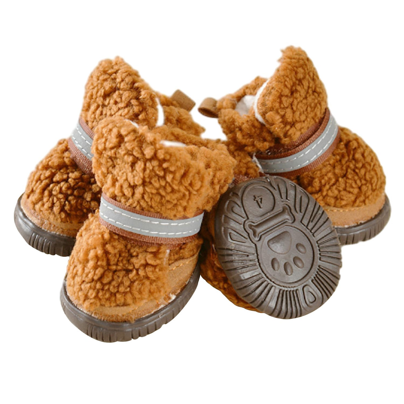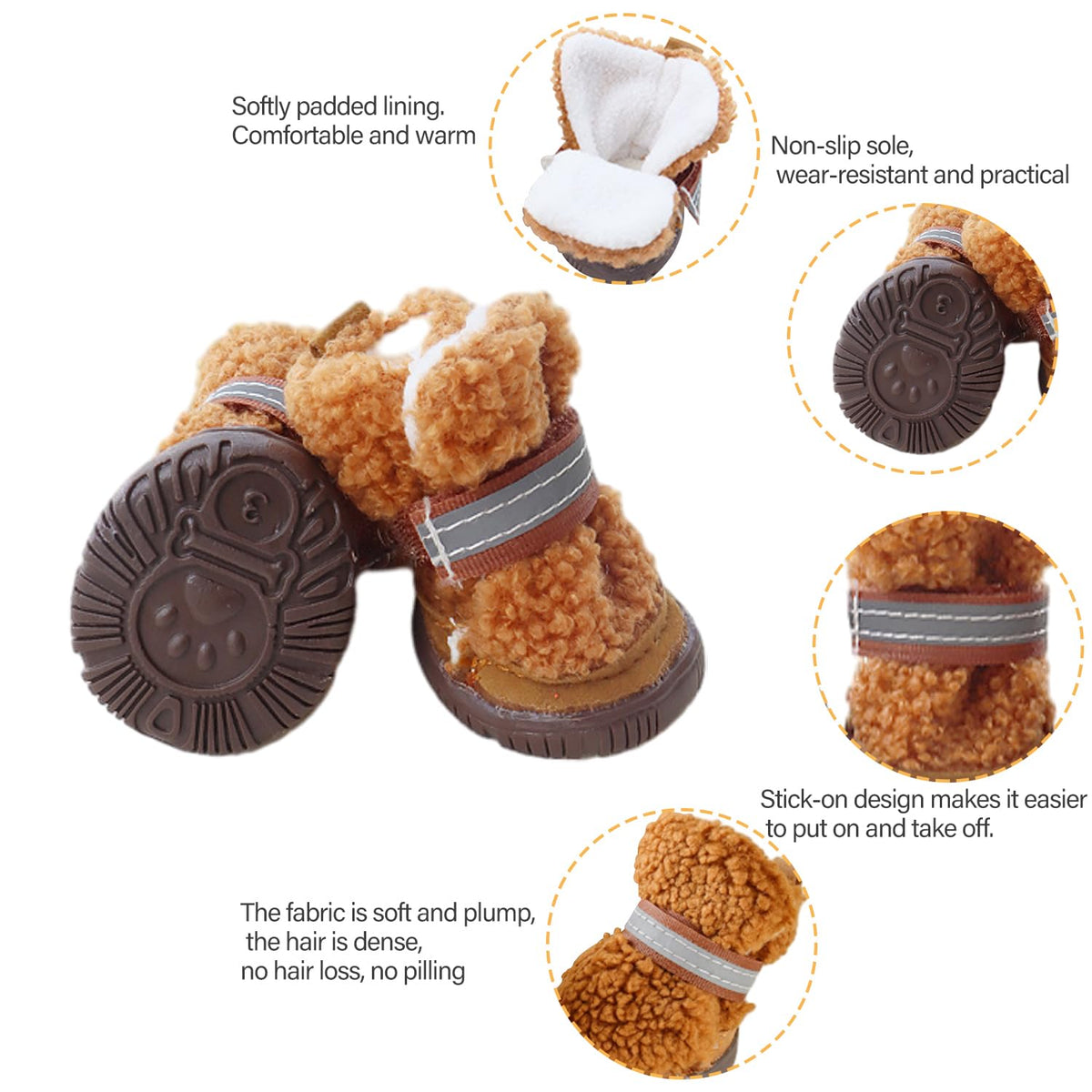 Urbest Dog Shoes Puppy Plush Warm Dog Snow Boots Reflective Strips Anti-Slip Rubber Sole Suitable For Small Medium-Sized Dog (Br