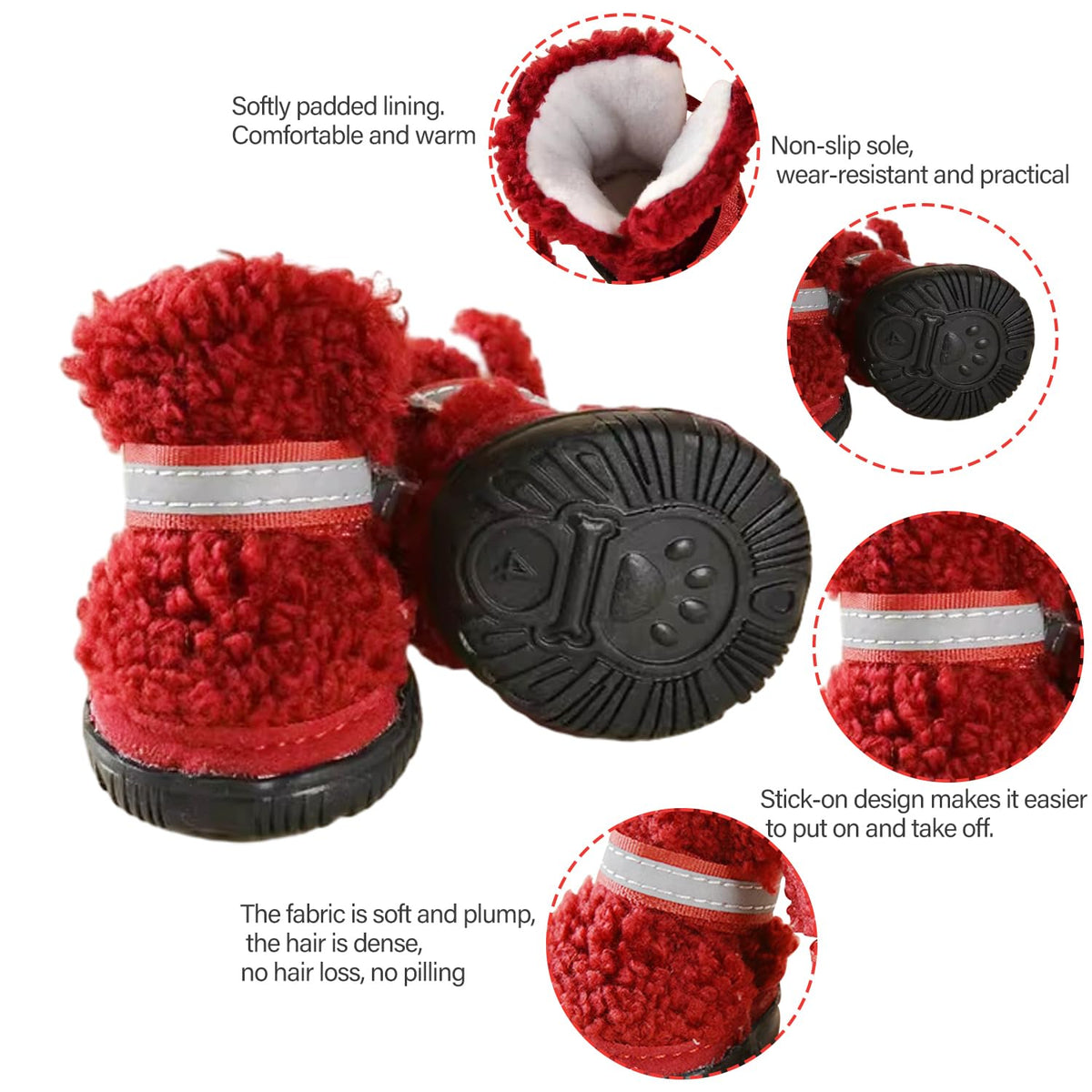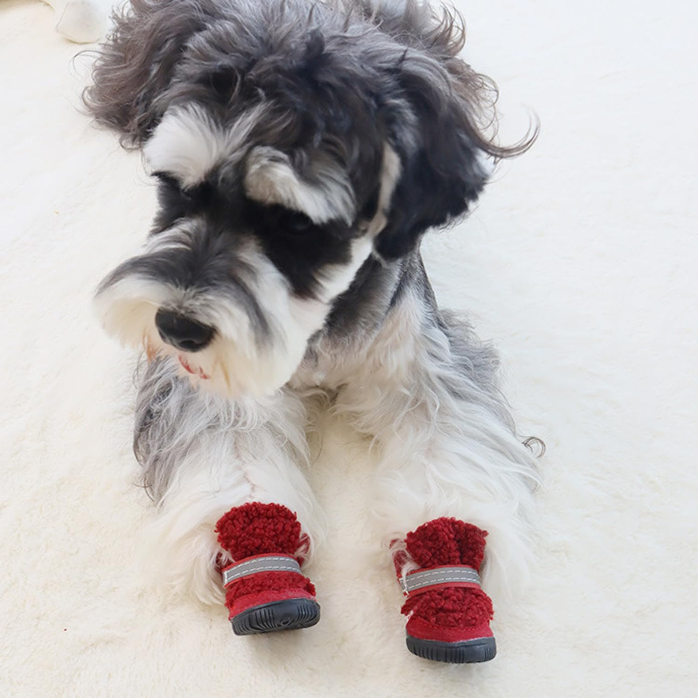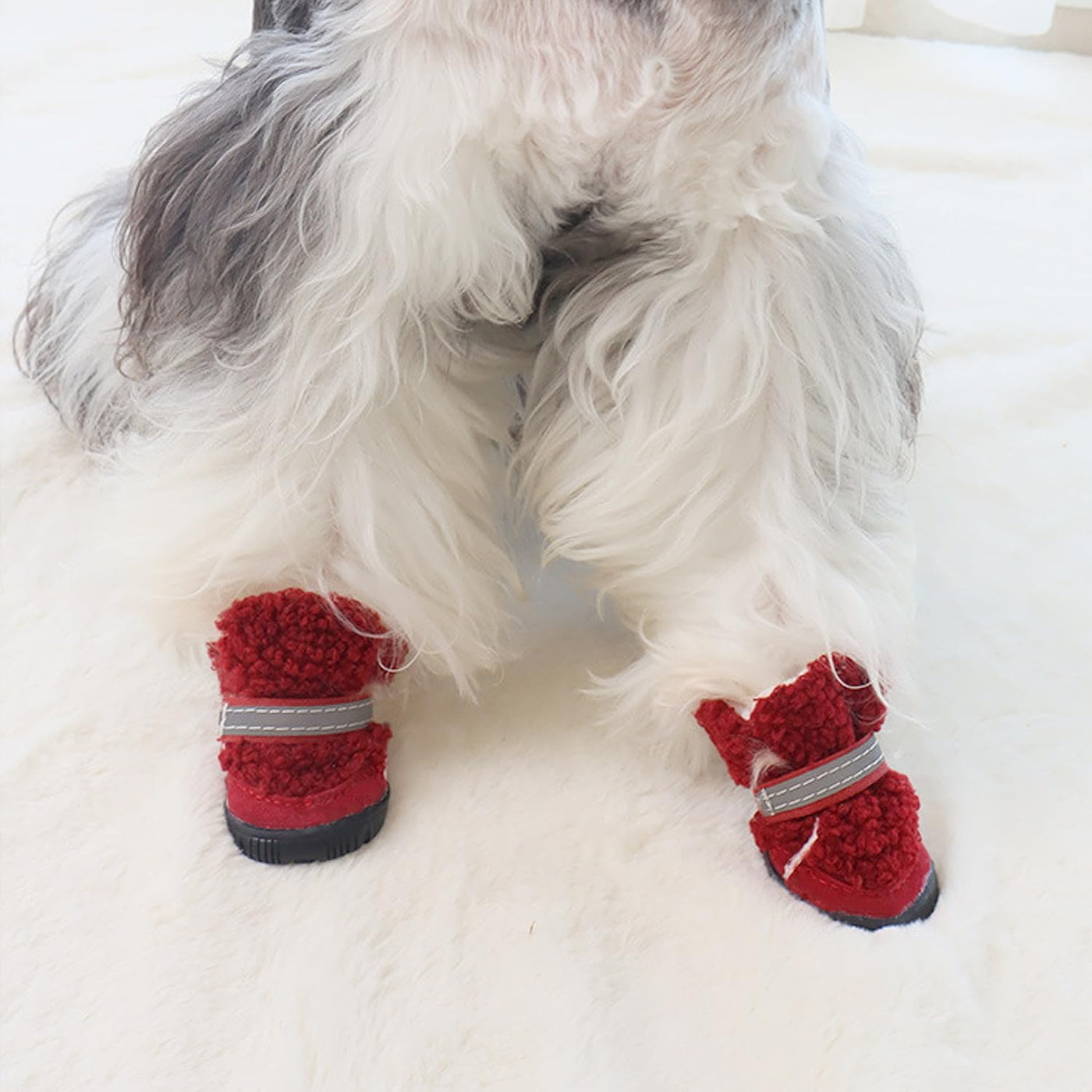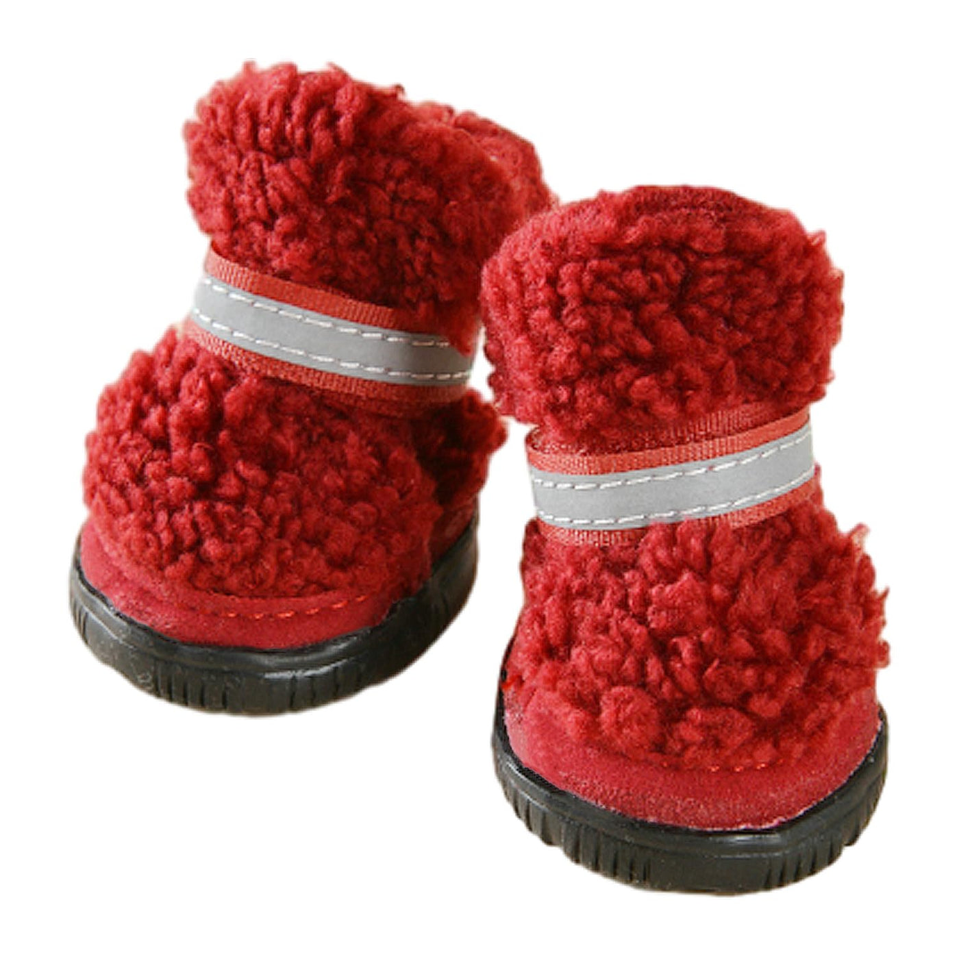 Urbest Dog Shoes Puppy Plush Warm Dog Snow Boots Reflective Strips Anti-Slip Rubber Sole Suitable For Small Medium-Sized Dog (Re