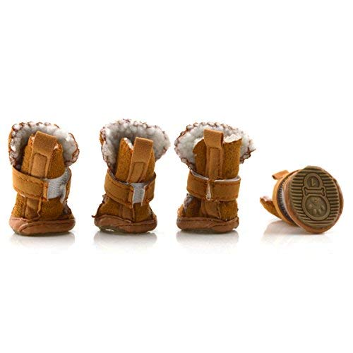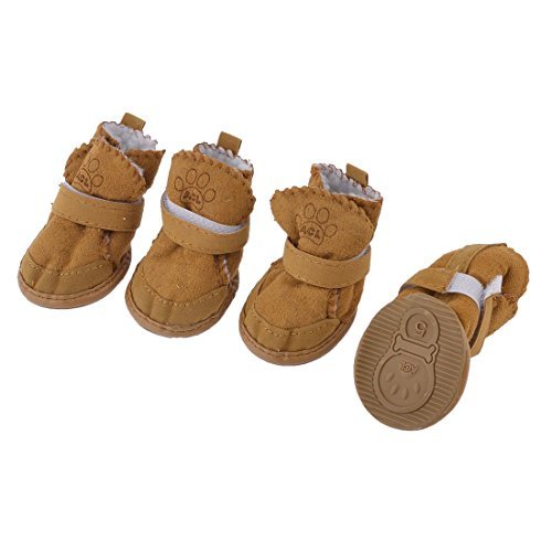 Urbest Dog Shoes With Hook Loop Closure Booties Pet Dog Chihuahua Shoes Boots, 4Pcs (5#, Brown)