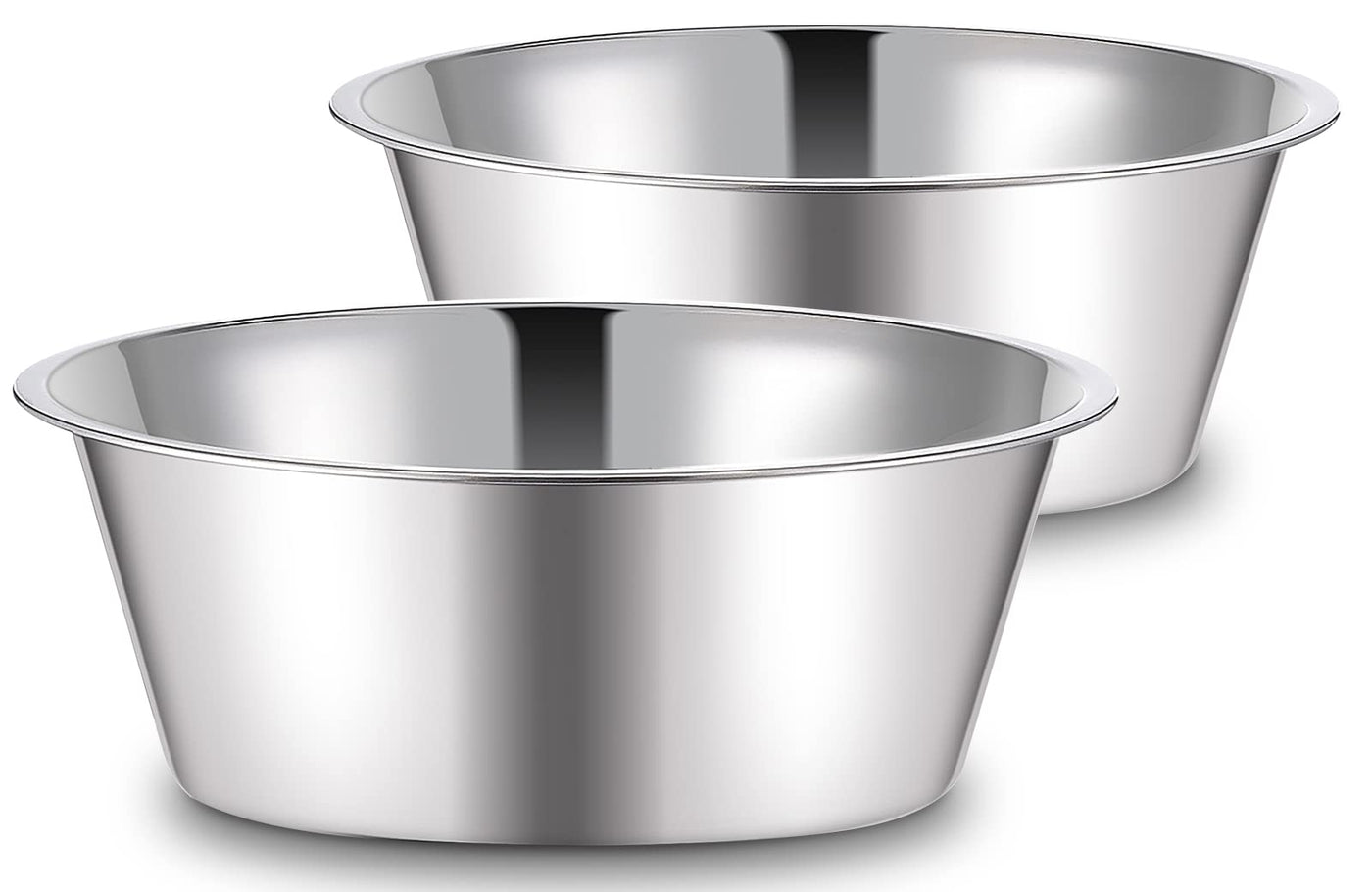 URBUDDIES 1.1 Gallon Extra Large Dog Bowls, 2 Pack, XL Stainless Steel Dog Water Bowls for XLarge Dogs, Polished, Dishwasher Saf