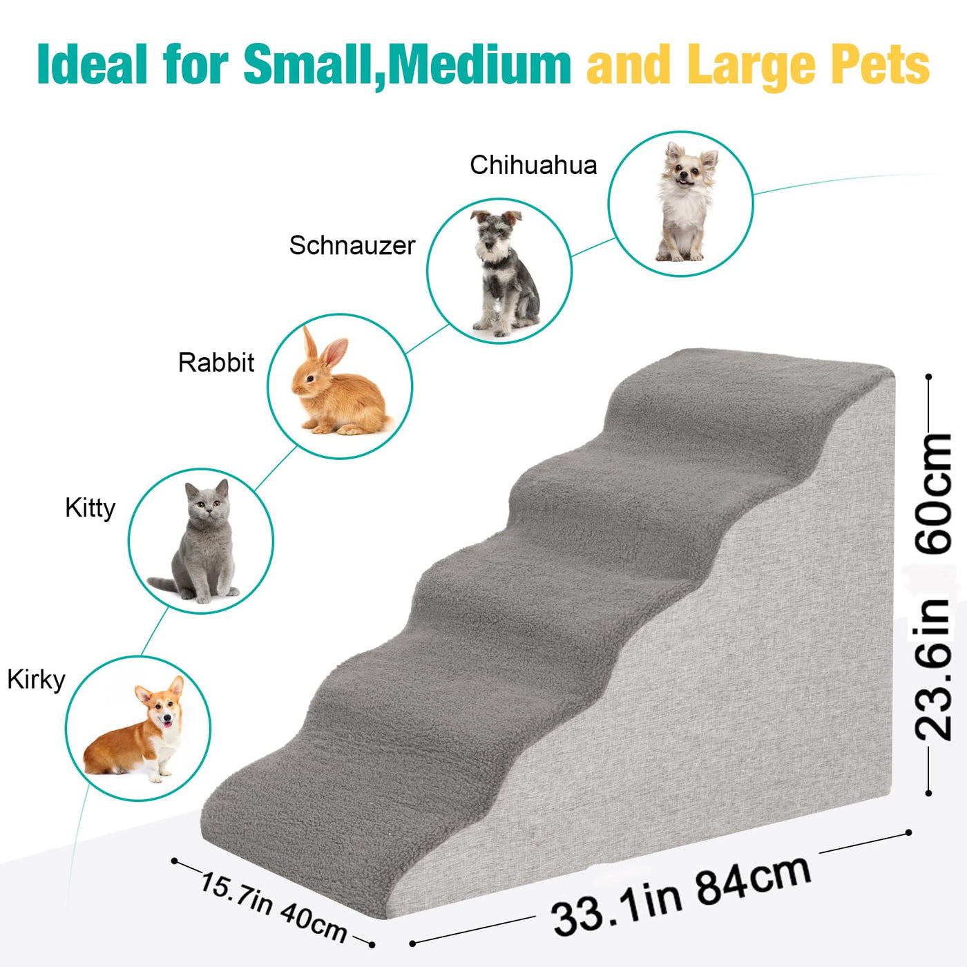 Uross Dog Stairs For Small Dogs - 5 Tier Steps & Ramps, High Density Foam Pet Steps, Gray