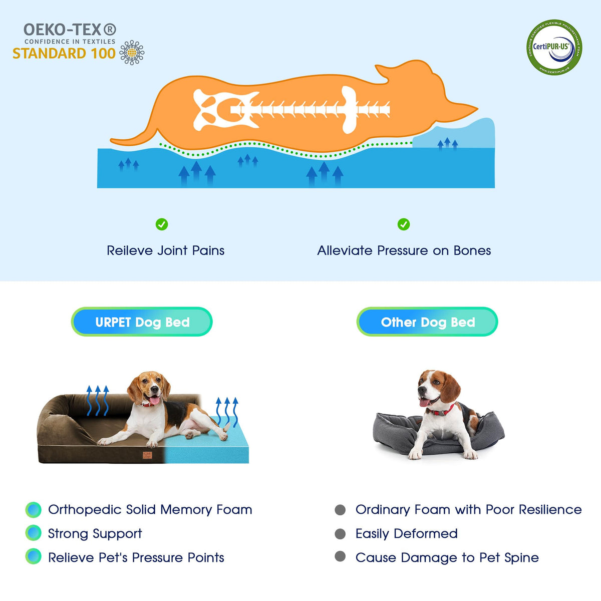 Urpet Orthopedic Dog Bed For Large Dogs - Big Washable Dog Couch Bed, Memory Foam Pet Sofa Bed With Waterproof Liner And Removab