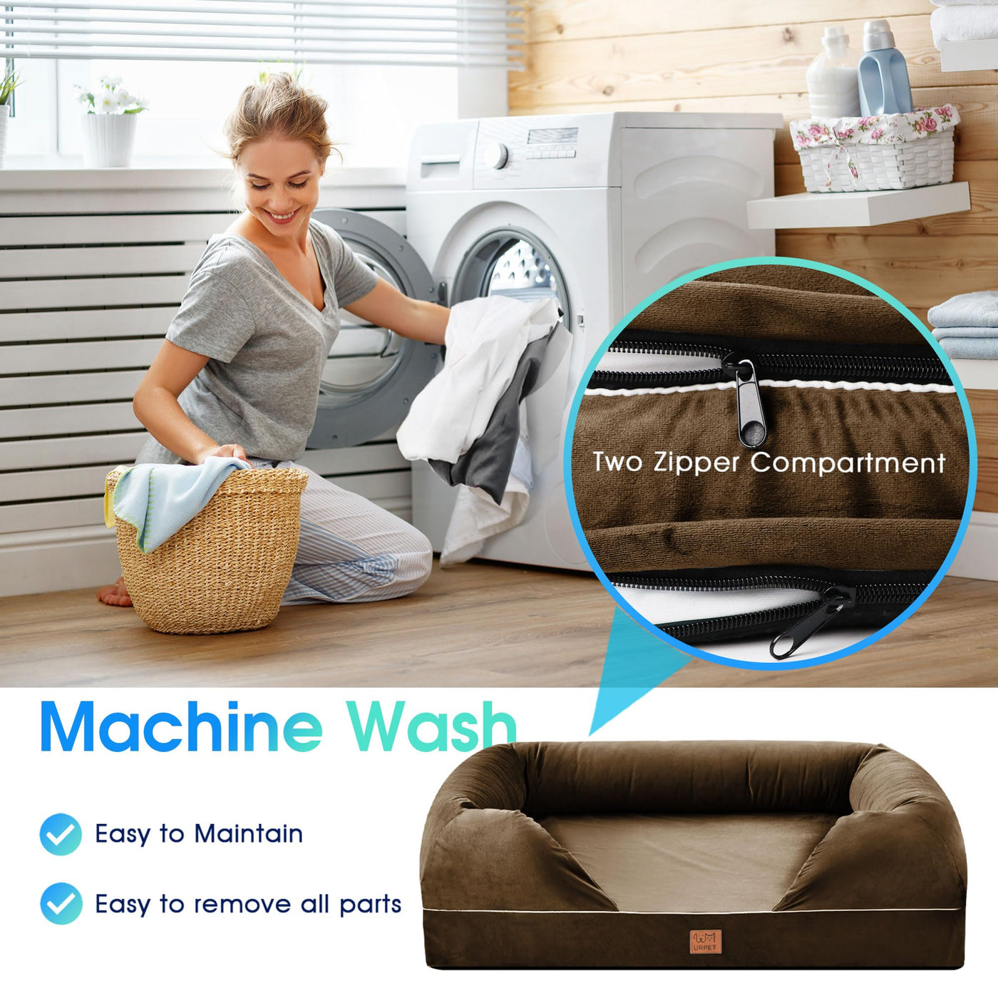 Urpet Orthopedic Dog Bed For Large Dogs - Big Washable Dog Couch Bed, Memory Foam Pet Sofa Bed With Waterproof Liner And Removable Zipper Cover, Non-Slip Bottom, Brown, 36X28Inches