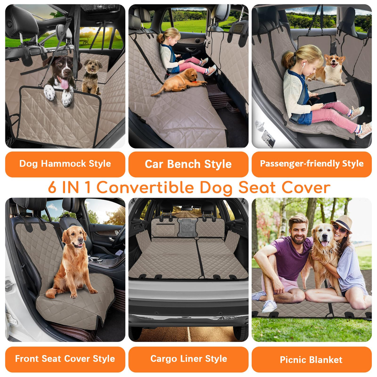 Urpower 6 In 1 Dog Car Seat Cover, 60/40 Split Dog Seat Cover For Back Seat 100% Waterproof Dog Car Hammock Nonslip Backseat Dog