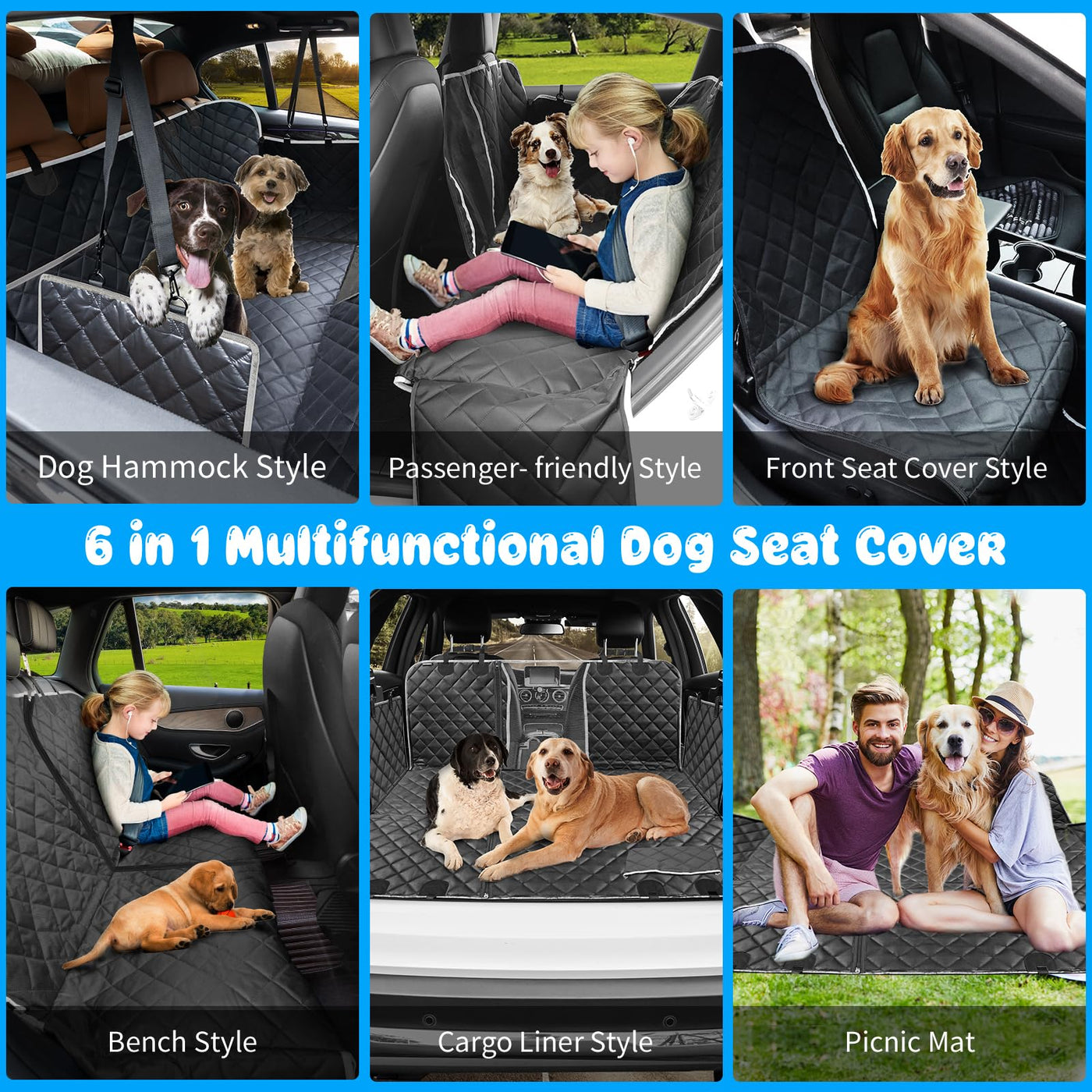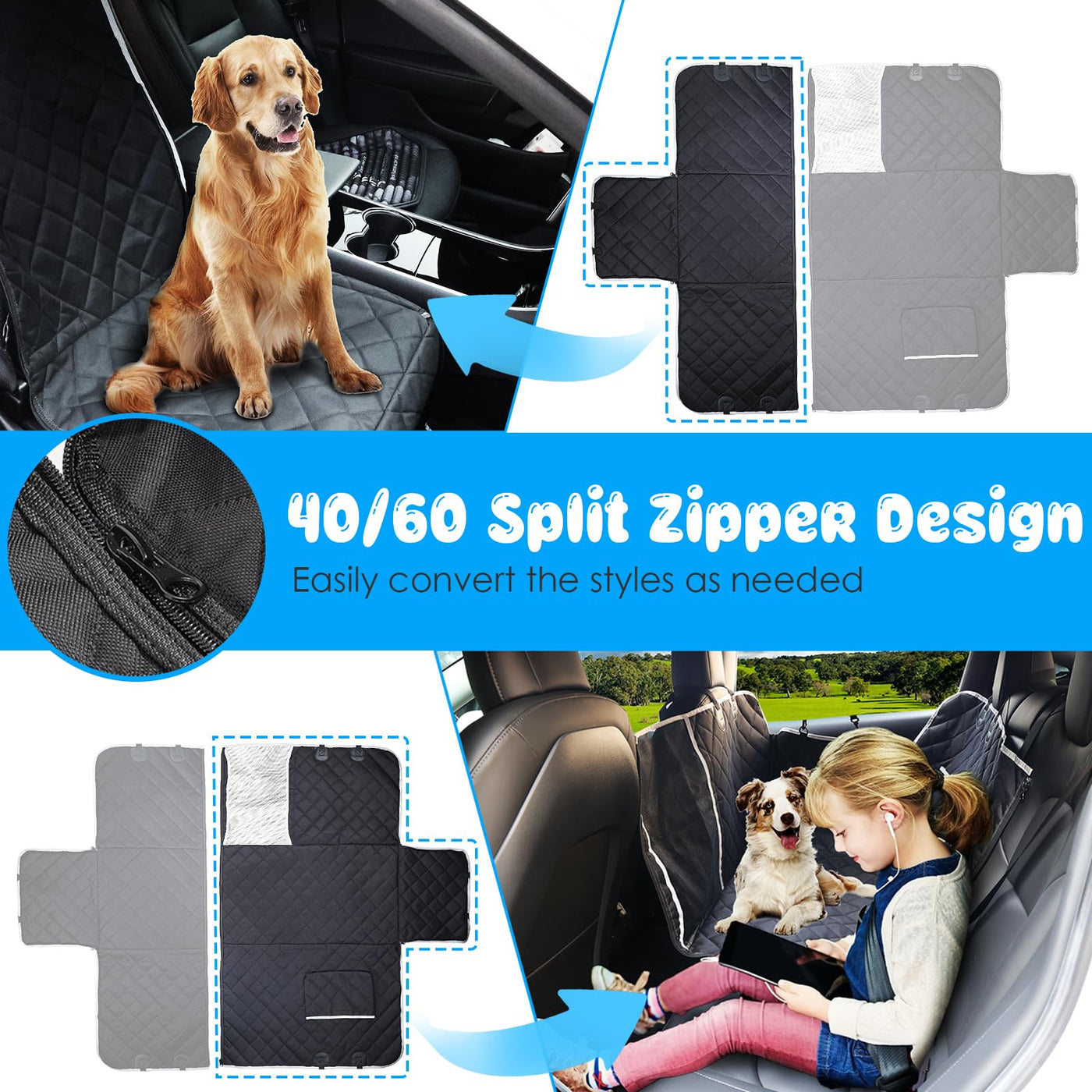 URPOWER 6-in-1 Dog Car Seat Cover for Back Seat, Waterproof Dog Car Hammock 40/60 Split Dog Seat Cover with Mesh Window and Side