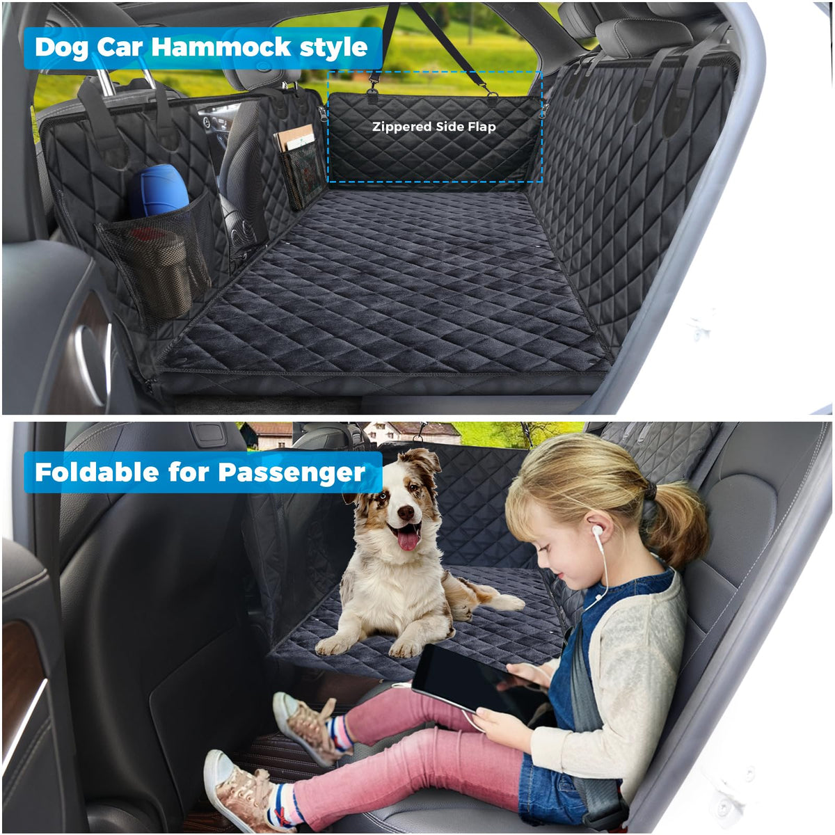 Dog Car Hammock with Side Flap The dog seat cover provides full protections for your back seat and doors. Zippered side flaps make it easy for dogs to get in and out of the car.