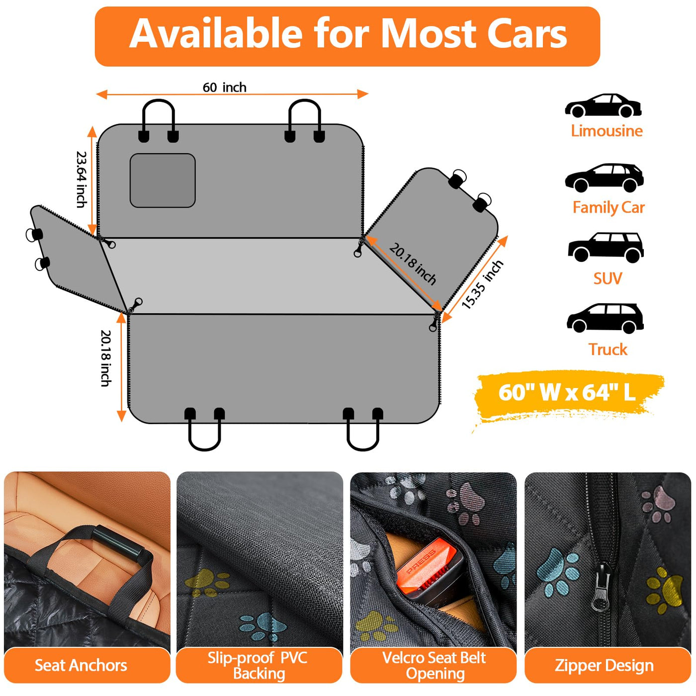 Q: Can I use the URPOWER Dog Seat Cover in different types of vehicles?A: Yes, the URPOWER Dog Seat Cover is designed to fit most cars, trucks, and SUVs, with a maximum open size of 60" W x 64" L to provide comprehensive coverage.