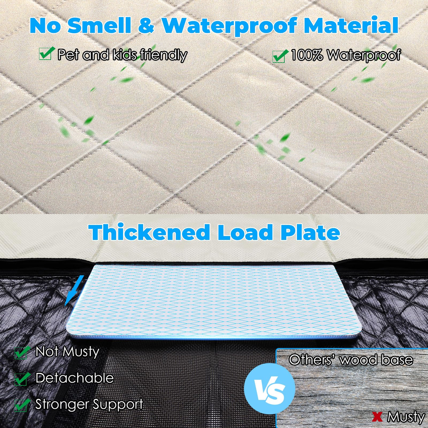 Q: What materials are used in the URPOWER Dog Car Seat Cover?A: The URPOWER Dog Car Seat Cover is made from heavy-duty Oxford cloth and a thick load-bearing plate, ensuring durability and comfort for your pets. The materials are non-toxic, making it safe for both pets and children.