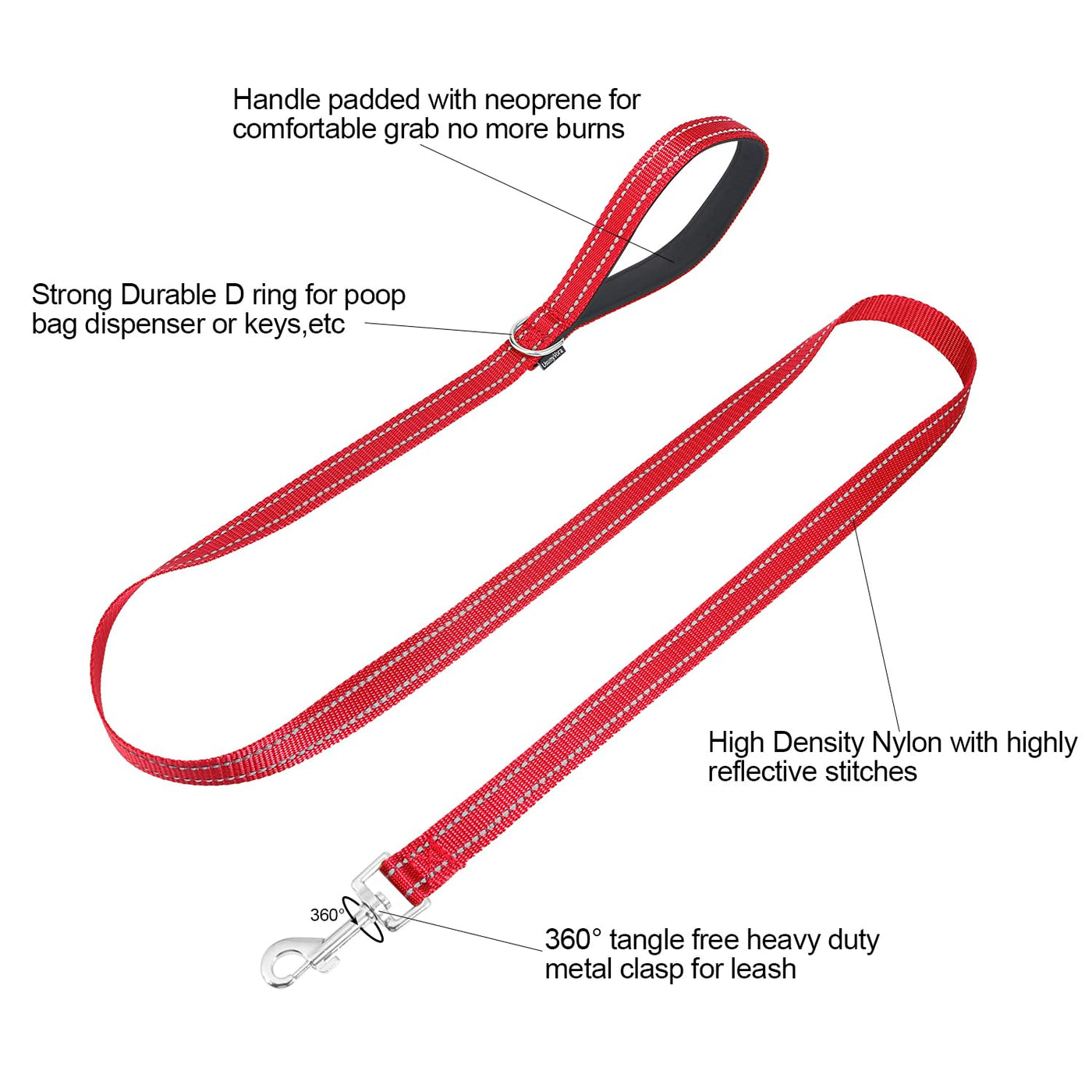 Usunyvora Reflective Nylon Dog Leash For Walking,Strong Dog Leash With Padded Handle For Medium And Large Dogs,4 Ft,Red