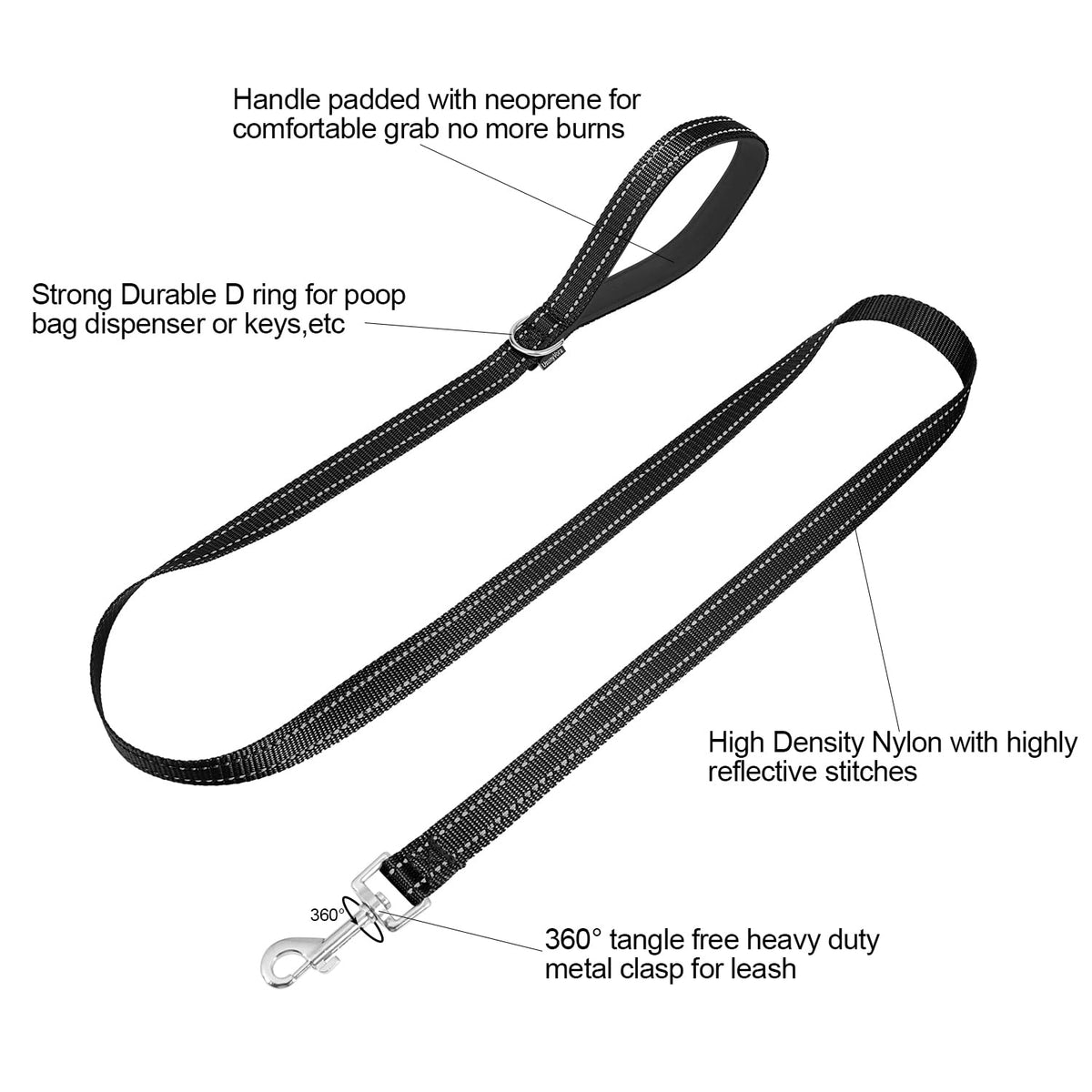 Usunyvora Reflective Nylon Dog Leash For Walking,Strong Dog Leash With Padded Handle For Medium And Large Dogs,6 Ft,Black