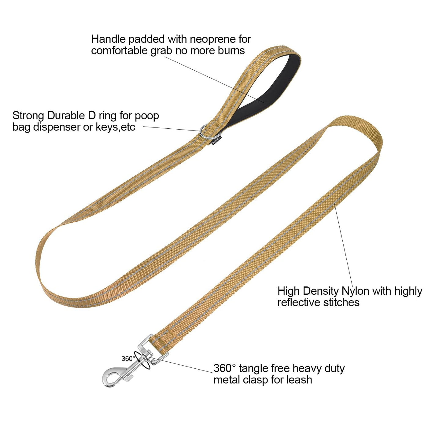 Usunyvora Reflective Nylon Dog Leash For Walking,Strong Dog Leash With Padded Handle For Puppy And Small Dogs,4 Ft,Camel
