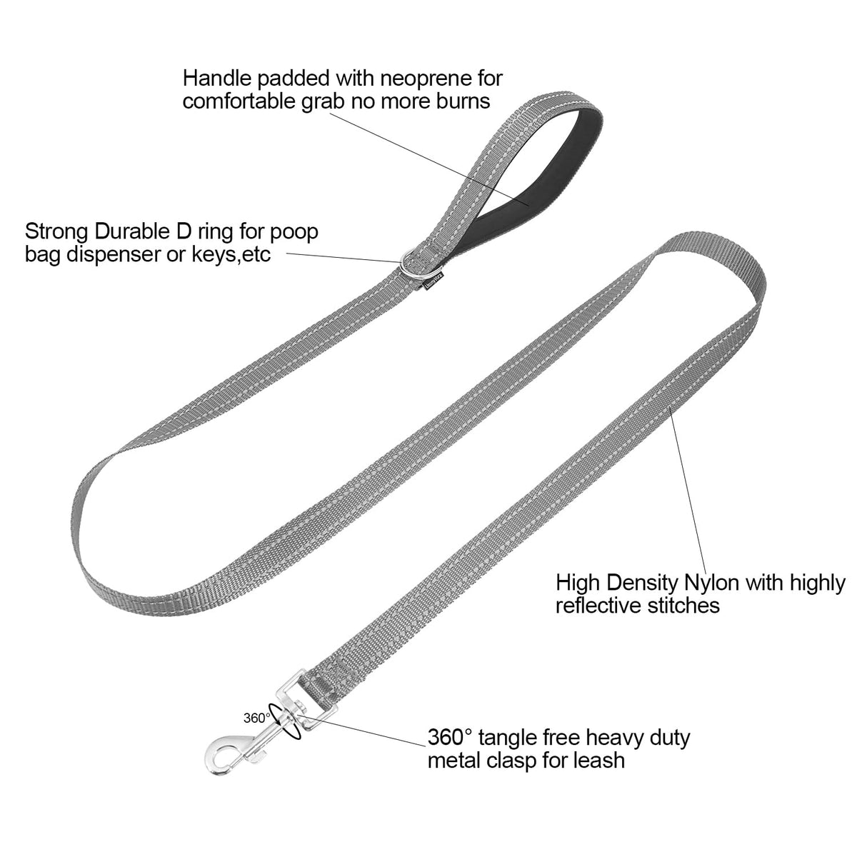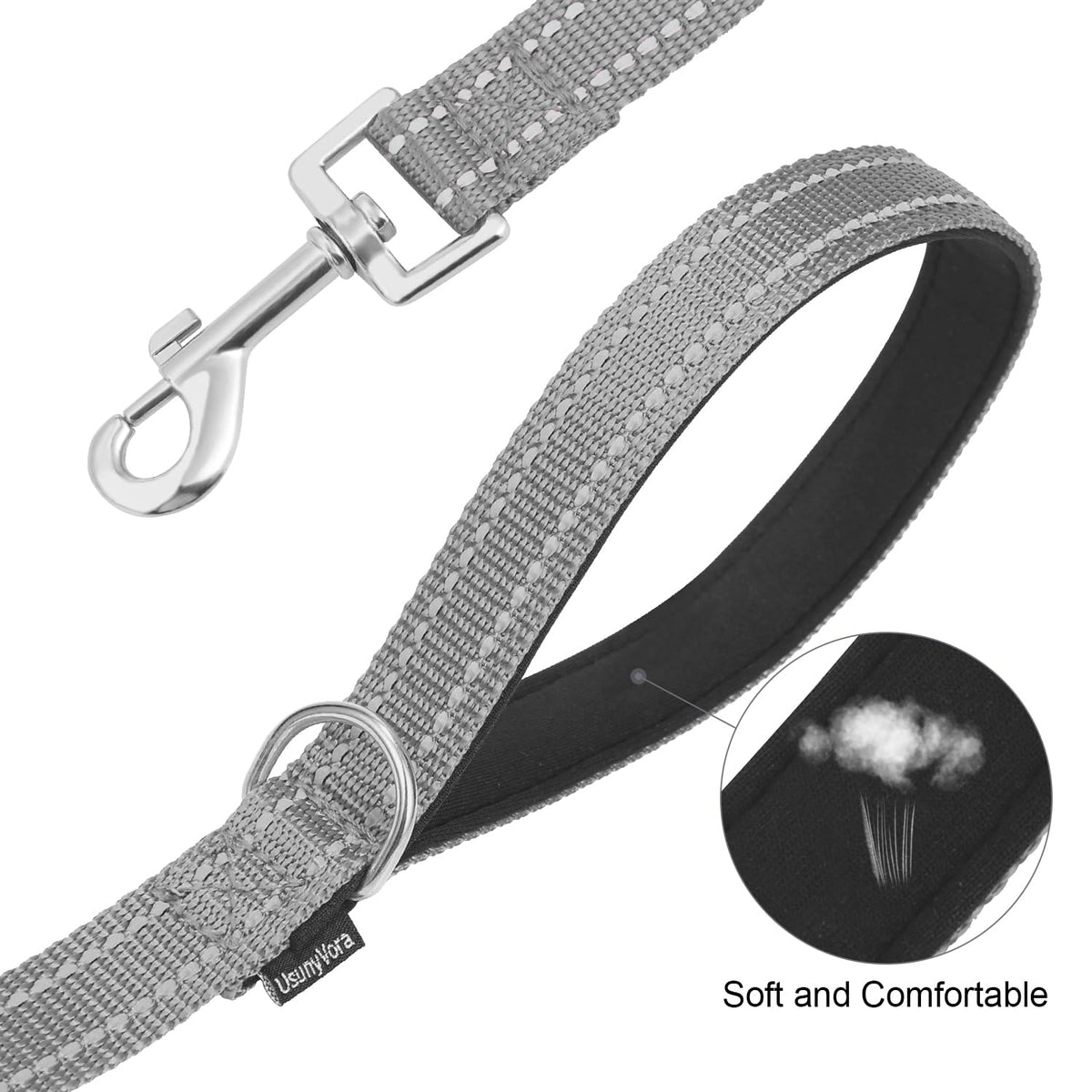 Usunyvora Reflective Nylon Dog Leash For Walking,Strong Dog Leash With Padded Handle For Small And Medium Dogs,4 Ft,Grey
