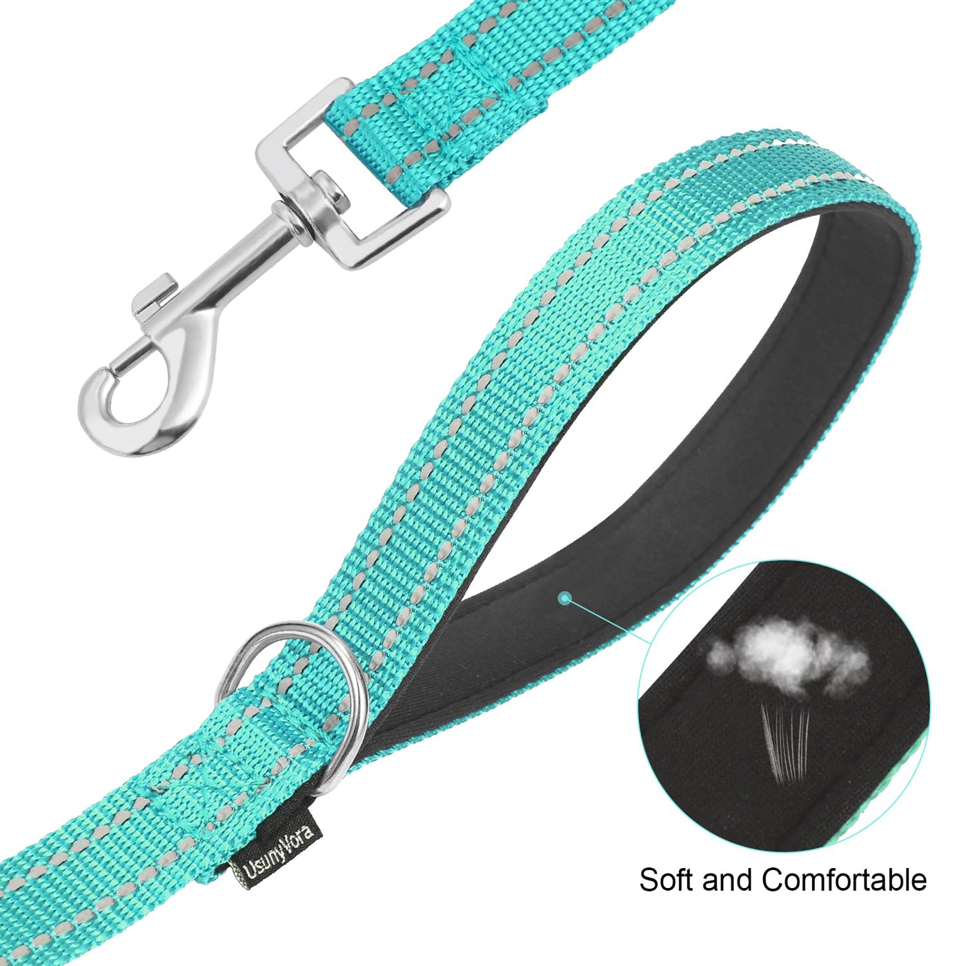 Usunyvora Reflective Nylon Dog Leash For Walking,Strong Dog Leash With Padded Handle For Small And Medium Dogs,6 Ft,Turquoise