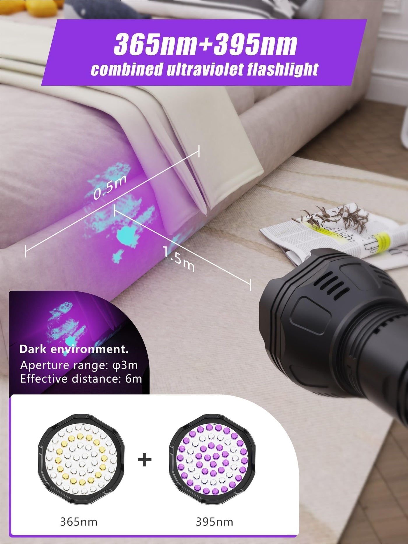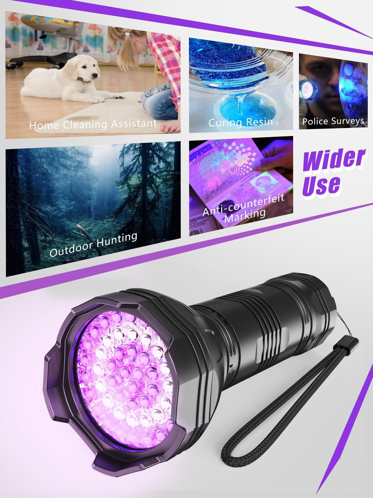 Uv Blacklight Flashlights Rechargeable 365Nm + 395Nm 51 Leds, Black Light For Pet Urine Detection Cat Dogs, Ultraviolet Flashlig