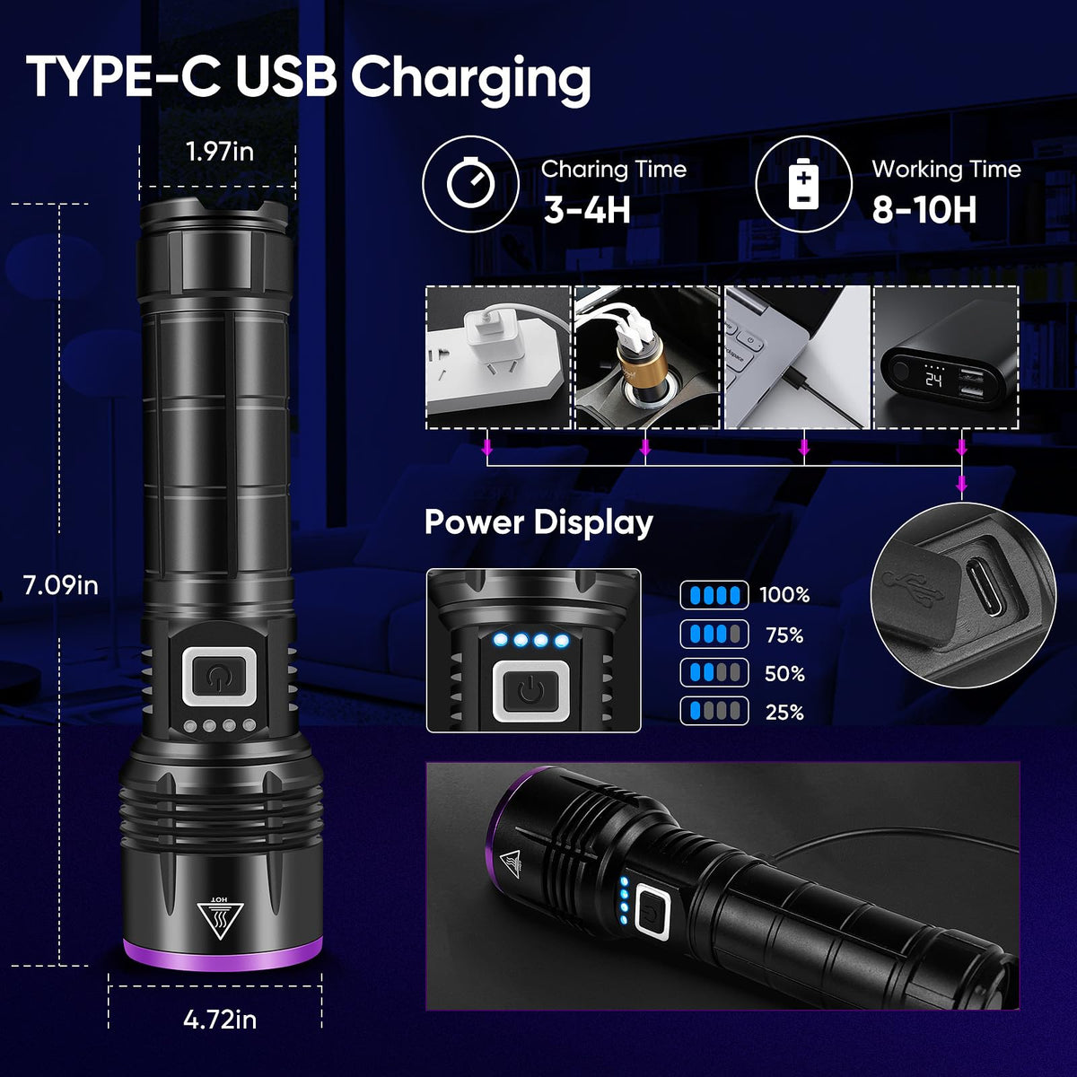 Black Light For Pet Urine Detection,Uv Flashlight For Resin,Uv Resin Light,Blacklight Flashlight,Uv Light For Resin,Black Lights,Uv Lamp,Uv Lights,365 Nm Uv Light,Uv Flashlight Rechargeable,Black Light For Detecting Urine,365 Nm Uv Flashlight,Uv Light Flashlight,Pet Urine Detector Light,Ultra Violet Flashlights Uv,Uv Flashlight Pet Urine Detector,Uv Flashlight 365Nm,Uv Black Light Flash Light,Uv Light For Pet Urine Detection,Uv Light For Resin Curing,Black Light Flashlight Powerful,Uv Flashlight For Rocks,Black Light For Uranium Glass,Yooperlite Flashlight,Cat Pee Light,Uv Black Light,Cat Urine Detector,Wood Lamp,Blue Light Flashlight,Uv Flashlights,Handheld Uv Light,Uv Light 365Nm,Black Flashlight,Uv Flash Light,Handheld Blacklight,Uv Black Lights,Urine Detector Light,Rechargeable Uv Flashlight,Uv Light For Ac,Uv Led,Black Light Flash Light,Torch Light,Luz Ultravioleta,Uv Led Light,Uv Cure Light,Blacklight To Detect Cat Urine,Portable Uv Light,Uv Lamps,Portable Black Lights,Black Light Lamp,Urine Light Detector For Dogs,Rechargeable Led Flashlight,Bed Bug Detector Light,Usb Rechargeable Flashlight,Black Light Flash Light,Powerful Flashlight,Resin Lamp,Bed Bug Light Detector,Uv Resin Lamp,Travel Flashlight,Uv C Lamp,Resin Light,Lampara De Mano,Waterproof Flashlight,Resin Uv Light,Ac Uv Light,Usb Flashlight Rechargeable,Rechargeable Flashlight,Usb C Rechargeable Flashlight,Battery Powered Flashlight,Uv Resin Curing Lightilluminate Your World With Our 365Nm Uv Flashlight - Unbeatable Power And Valuewhy Settle For Less When You Can Have It All With The Ultraviolet Light? Upgrade Your Uv Exploration Today And Leave The Competition Behind. Make The Smart Choice And Illuminate Your World With The 365Nm Uv Light.Waterproof:Ipx6 What'S In The Box? 1*365Nm Uv Flashlight ( With Lanyard),1*5000Mah Rechargeable , 1*Usb Cable, 1*Instruction Manual, 1* Tube, 1*Aaa Holder, 1*Gift Box