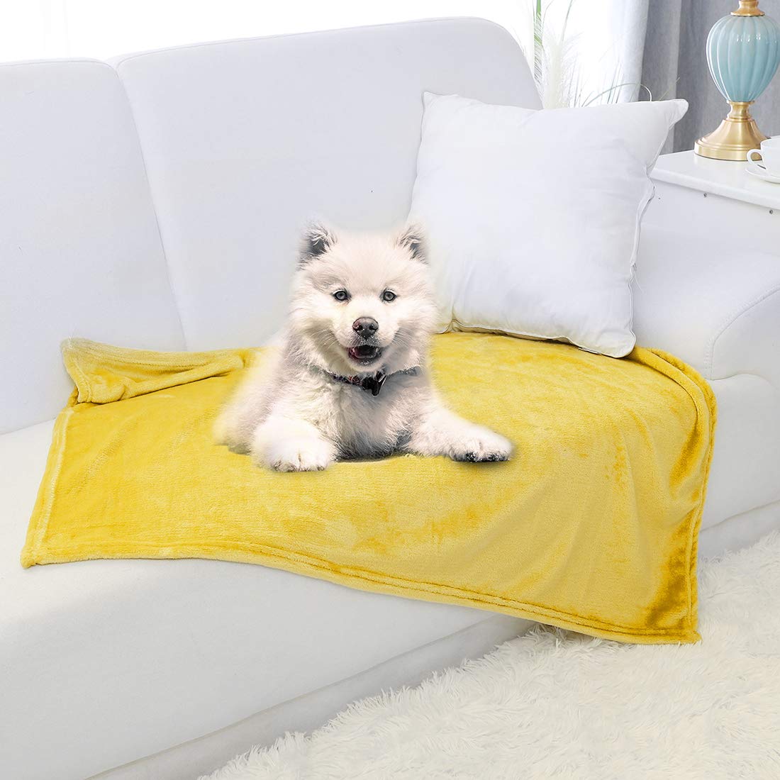 Uxcell Pet Dog Blanket, Flannel Fleece Puppy Blanket Solid Plush Warm Rug Blankets And Throws For Small-Medium Dogs Cats Doggy Sleeping Mat, Yellow 27X40 Inch