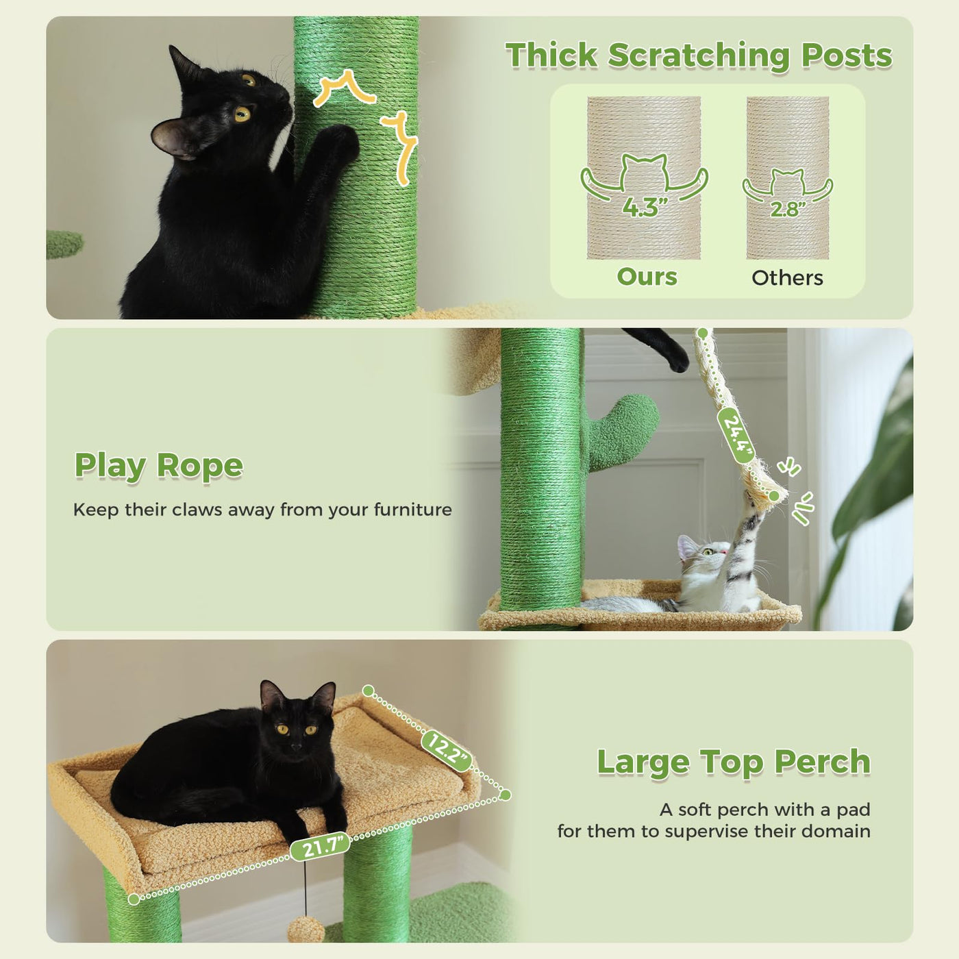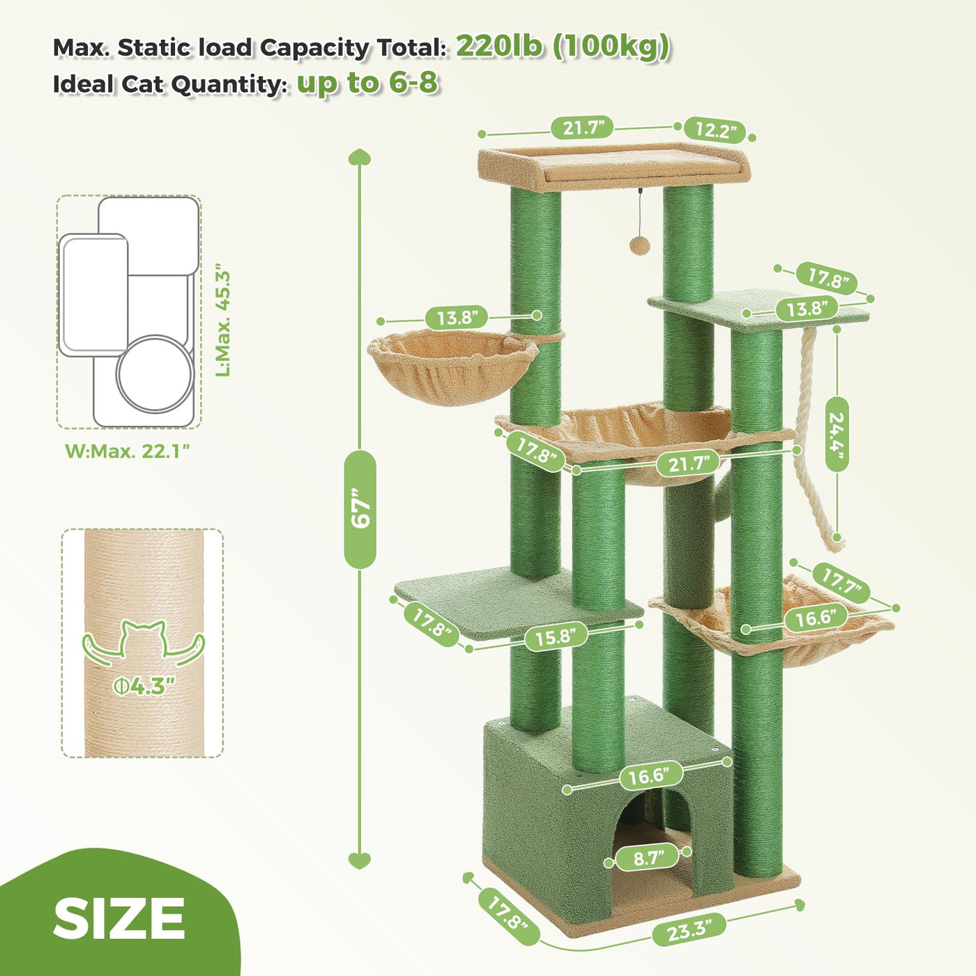About Us: This Uymi Heavy Duty Cat Tree Is Designed For Large Cats And Can Accommodate 5-6 Large Cats To Play At The Same Time, Which Is Very Suitable For Multi-Cat Families. Stable Enough For Energetic Cats And Fun Enough For Cute Kittens. The Quiet And Spacious Apartment Provides A Private Nap For Your Cat; The Oversized Top Perch With Padding Provides Your Cat With A High View; The Extra-Large Hammock And 2 Round Baskets Are Suitable For Your Cat To Have A Cozy Nap And Rest, And The Dangling Ball And The Thick Long Play Rope Provide Extra Fun For Your Cat; Combined With Multiple Resting Platforms And Extra Thick Natural Sisal Scratching Posts, This Cat Tower Creates An Adventurous Paradise For Curious Cats. The Sturdy Construction, Balanced Design And 1.6 Thickened Double-Layer Base Ensure Your Furry Baby Is Safe When Playing On This Cat Tree. [Features] [Color]: Black, Beige, Pink [Length]: 115Cm=45.3'' [Width]: 56Cm=22.1'' [Height]: 170Cm=67'' [Weight]: 9.08Kg=20.02Lbs [Specifications] 1X Cat Tree 1X Installation Manual 1X Spare Pom Poms 1X Tools And Parts Set Max. Static Load Capacity Total: 220 Lb (99.7 Kg) [1 Year Warranty] 100% Customer Service Satisfaction Guarantee! If You Have Any Problems With Uymi Products, Please Contact Us First, Then We Will Solve The Problem And See Your Smile Again. Uymi Notes: For The Safety Of Your Furry Friend, We Recommend Using The Included Anti-Tip Chain To Secure The Cat Tree To The Wall, Preventing Wobbling Or Tipping During Active Play. If Any Part Of The Cat Tree Gets Scratched Or Damaged By Playful Paws, Please Repair Or Replace It Promptly To Avoid Any Potential Injury To Your Pet. Should You Need Any Replacement Parts Or Additional Accessories, You Can Easily Purchase Them Directly From Our Store. Your Cats Safety And Comfort Are Our Top Priority, And Were Always Here To Help!