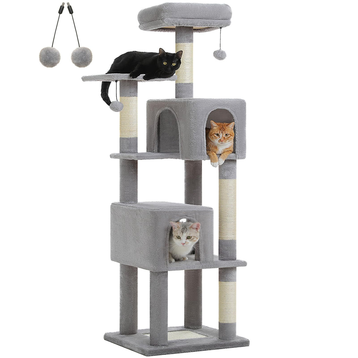 About Us: This Modern Uymi Cat Tree Will Be Stable Enough For Your Energetic Cat, And Fun Enough For Your Adorable Kitten. Step-Like Jump Multi-Level Design Not Only Provides More Activity Centers But Also Allows Your Kittens To Climb This Cat Tree More Easily. &Nbsp; &Nbsp; The Quiet And Roomy Condo Is Ready For Your Cat To Have A Private Nap; An Extra-Large Top Perch With Raised Edge Offers More Safety And Support For Your Cat; The Hanging Scratching Rope And The Dangling Hammock Provide Your Feline Additional Fun; &Nbsp; &Nbsp; Combing With Several Resting Platforms As Well As Strategically Placed Scratching Posts, This Cat Tower Creates An Enticing World For Curious Cats. Solid Construction With A Balanced Design And A Strong Base Ensures Your Fur Babies Are Safe When Playing On This Cat Tree. The Light Grey Color Will Also Match The Furniture Of Your Room. Your Pets Will Enjoy A Lot On This New Castle! [Overall Dimensions] [Length]: 49Cm=19.3' [Width ]: 41Cm=62' [Height]: 157Cm=31.5' [Weight]: 11.7Kg=25.7Lbs [Specifications] 1X Cat Tree 1X Installation Manual 1X Spare Pompom 1X Set Of Tools And Parts [1 Year Warranty] 100% Customer Service Satisfied Guarantee! If You Have Any Issues With Uymi Products, Please Contact Us First, Then We Will Make It Right, And See Your Smile Again. [Innovation]: Rst = Replaceable Screw Toy, Cats Can Enjoy Them Their Whole Life Cats Love Dangling Toys,&Nbsp; Hunting Them Catching Them, And Biting Them. Mostly, The Toy'S Lifetime Is About 1-3 Months, Maybe Only A Few Days In Aggressive Cats. The Innovation: We Re-Design The Toy With A Replaceable Screw, So You Can Easily Change It With A New Dangling Ball, And We Gift With 1 Extra Toy Ball, And Of Course, You Can Buy More From Uymi