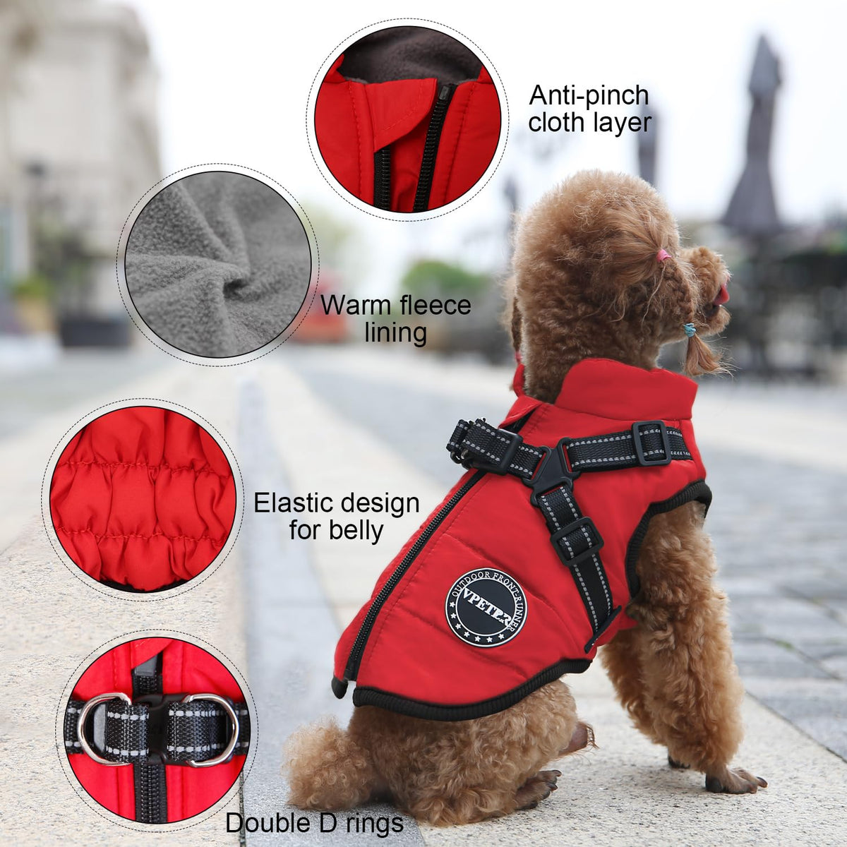 V.Pet.B.R Dog Winter Coat, Warm Padded Fleece Vest With Built-In Harness, Waterproof Windproof Reflective Snow Pet Coat For Smal