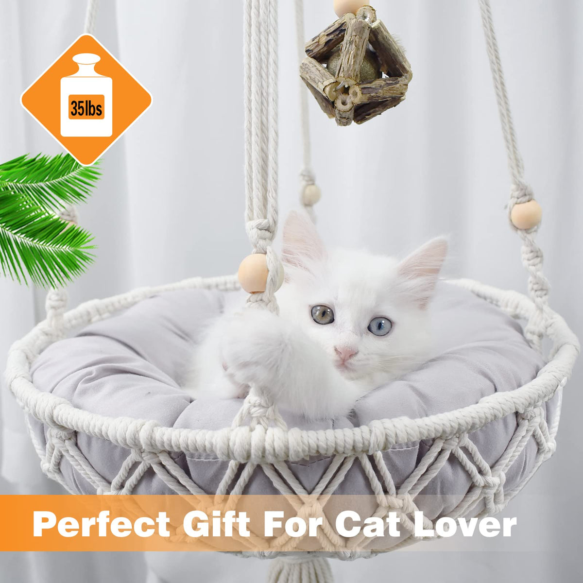 ?Hammock Cats?Unique design bohemian-style cat swing bed This hanging bed swing is handmade from 100% natural high-quality hand-woven cotton rope which makes it a perfect raised cute cat bed even for the pickiest cats and their owners.
