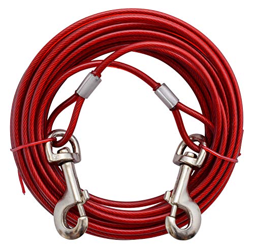 Let your dog safely enjoy the outdoors with you with Valterra' s Dog Tie-Out Cable. At 30 feet long, your furry companion will be able to run around and still be in your sight! The cable comes with swivel clips and is made out of aircraft grade steel and has weather resistant PVC vinyl covering. For dogs up to 100 pounds.