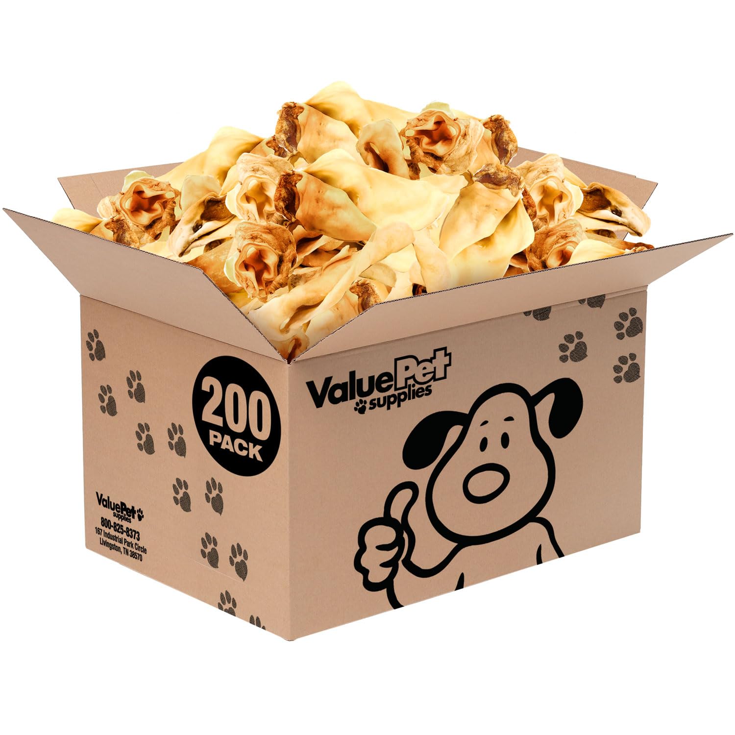 ValueBull Cow Ears, Varied Sizes/Shapes, 200 Count Bulk Pack - All Natural Dog Treats, 100% Angus Beef, Single Ingredient, Fully
