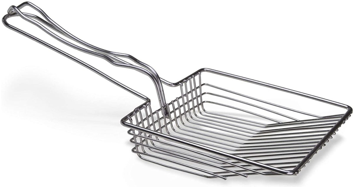 Q: What makes the Van Ness Pets EZ Sift Cat Litter Scoop stand out?A: The Van Ness Pets EZ Sift Cat Litter Scoop features a lightweight and durable stainless steel construction, designed with a deep basket and long, slender openings that efficiently sift through clumping litter while minimizing dust. This design helps to trap clumps for easy removal while allowing clean litter to fall back into the box.