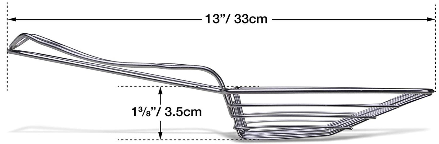 The Van Ness Dust Free Stainless Steel Litter Scoop features easy-to-clean stainless steel thats hygienic and designed to eliminate dust while scooping reducing airborne litter particles. Efficient sifting leaves clean litter behind which minimizes waste and saves money.Stainless steel hygienic constructionDeep basket and specially designed tines minimize dust reducing cat litter associated health risksLightweight and durablePerfect for clumping litter13 H X 6 W X 1.375 D