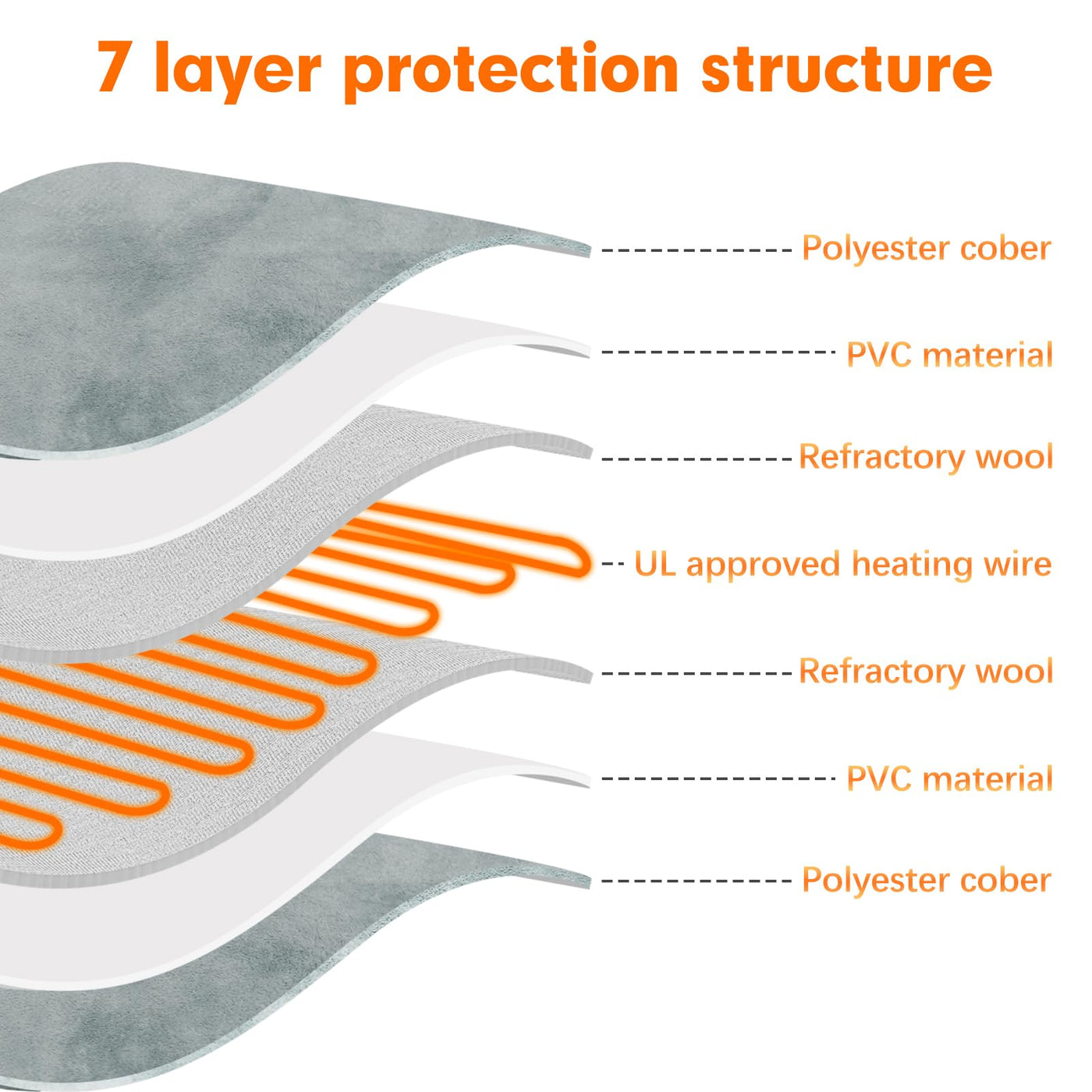 Vannon Pet Heating Pad, Heated Cat Dog Bed With Chew Resistant Cord, 5 Timer And 6 Level Temperature Indoor Warming Mat For Smal