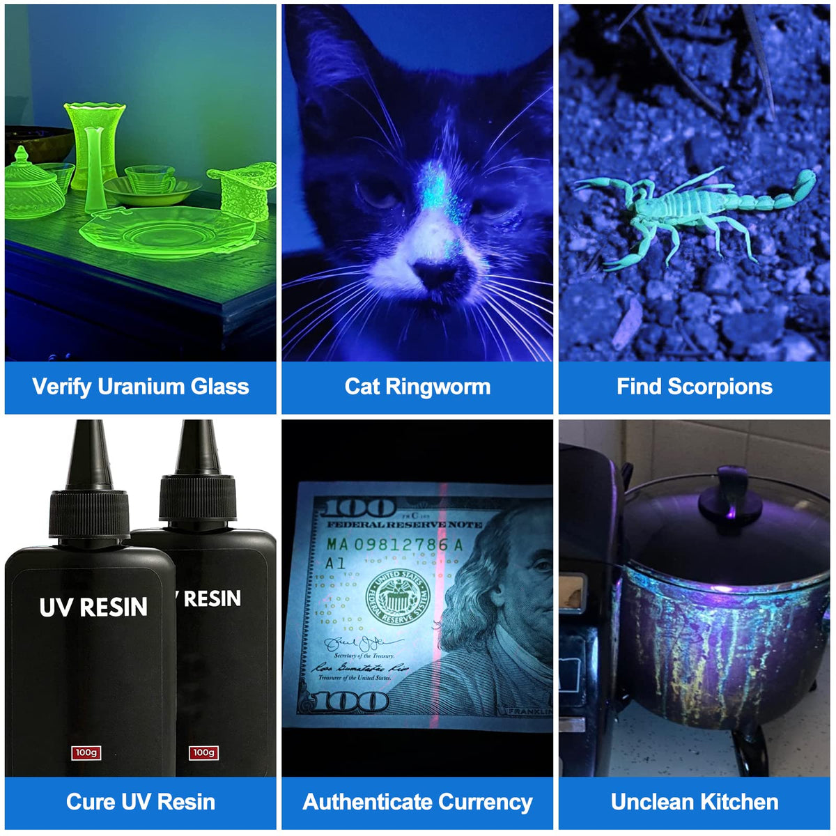 How Does It Work?Uv Or Ultraviolet Is A Type Of Light That Is Emitted In The Non-Visible Spectrum - So You Can'T See It. It'S The Portion Of The Rainbow You See In The Sky Where The Violet Disappears Into A Blur - The Blur And The Section Onward Is The Uv Spectrum, Which You Can'T See But It'S There. Vansky Black Light Uv Flashlight Is Special 365 Nanometer Wavelength Of Uv Light, The Special Structure Of Certain Molecules Can Be Excited By This Violet Light To Emit Different Colors Of Fluorescence. Such As Pet Urine, Scorpions, Fluorescent Powder, Invisible Ink. What'S In The Box? 1 X 365Nm Uv Flashlight6 X Aaa Alkaline Battery1 X User Guide Features: Waterproof Level: Ipx4 Voltage : 9V Material : Aluminum Alloy Long Running Time :5+ Hours On Full Battery Notes: -Can Only Spot Dried Urine Stain; -Does Not Work On Reflective Surface Or Carpet With Fluoresce; -The Ultraviolet Led Blacklight Works Best In Dark Environment, The Darker It Is, The Better It Works; -For Few Dark Color Carpets, The Reflected Stain Color Will Be Very Close To The Color Of The Carpet, Making It Harder To See; -Remove All Batteries If You Did Not Intend To Use It For A Long Time.