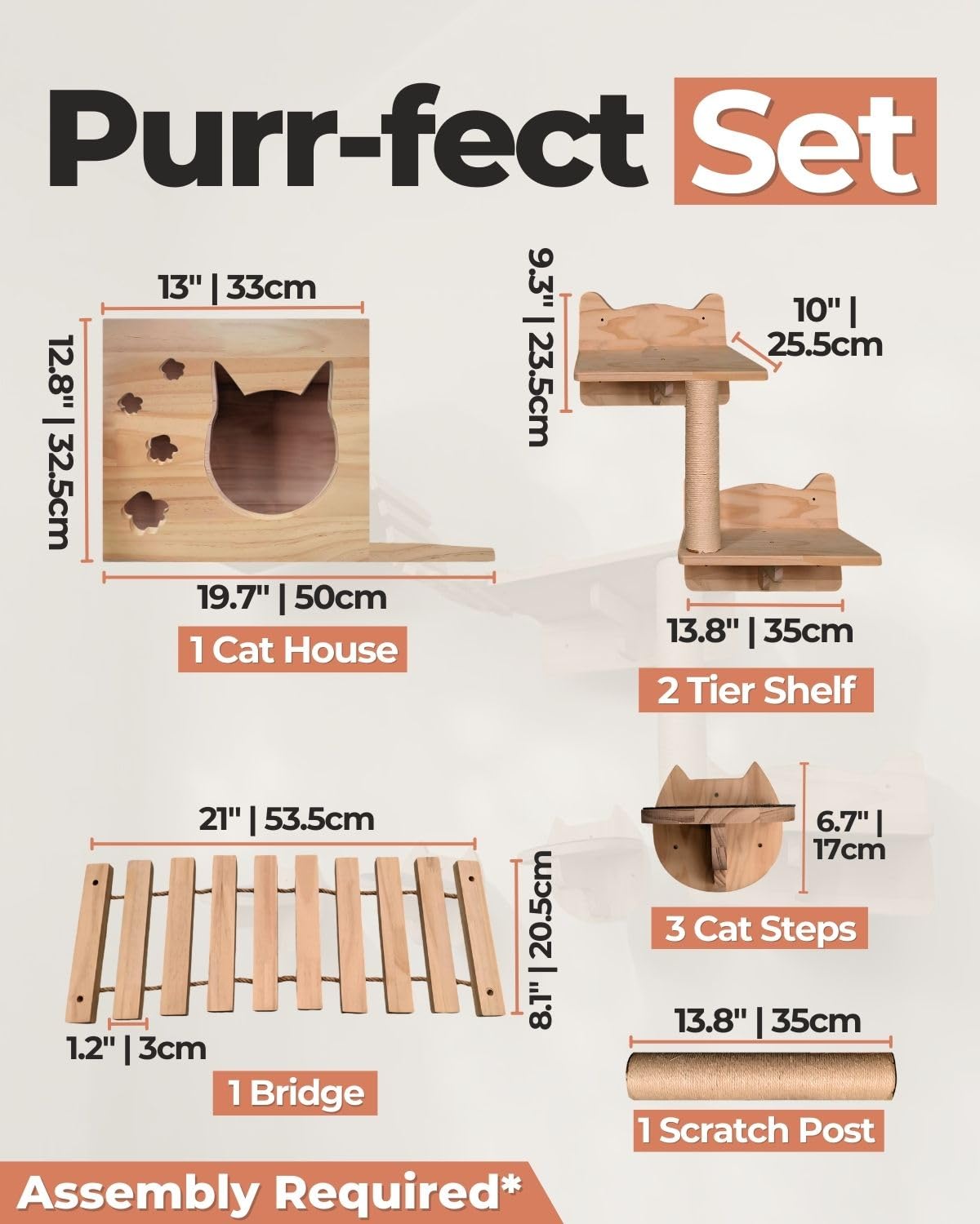 Transform Your Home Into A Feline Paradise With Our Cat Wall Shelves, Designed For Adventurous Cats Who Love To Explore; Featuring Sturdy Cat Shelves Climbing, Wall Mounted Cat Shelves, And A Cat Wall Shelf For Large Cats, This Wall Mount Cat Tree Offers A Safe And Stylish Way For Your Pets To Enjoy Their Own Cat Highway, Complete With A Cat Bridge For Wall, Floating Cat Shelves, And Cat Ledges For Walls, Creating A Unique Cat Wall Climbing Experience; Our Cat Wall Furniture Set Includes A Cat Perch Wall, Wall Cat Climber, And Cat Wall House, Allowing Your Furry Friends To Climb, Play, And Relax In Their Very Own Cat Wall Climb, While The Cat Wall Box Adds An Extra Touch Of Fun To Their Climbing Adventures.