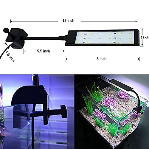 This Adjustable Fish Tank Light with clip With a flexible gooseneck allows you adjust the fish tank light to illuminate from different angles3 light modes available Under each light mode you can adjust the light brightness from 100% to 10%Makes the plants and your fish looks more beautiful under clean water