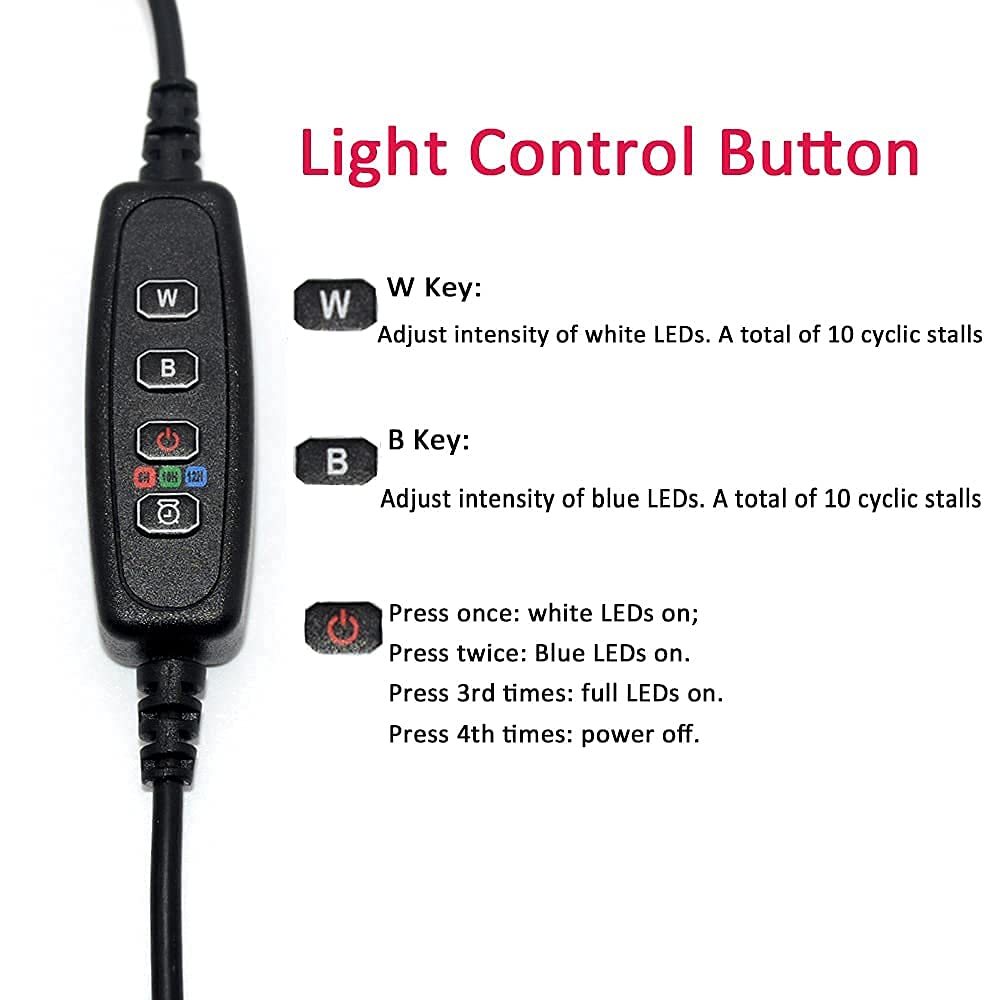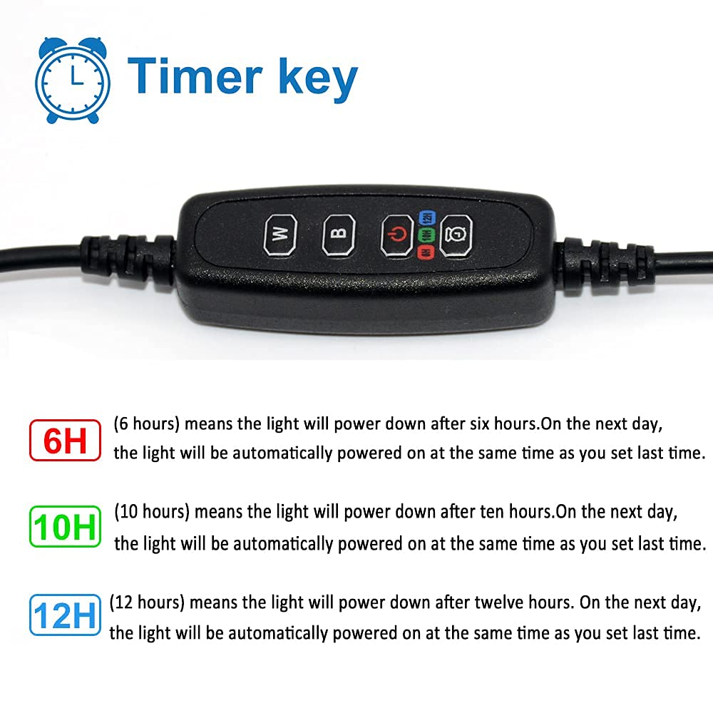 BUILT-IN TIMER -- Our Fish Tank clip on Light has a built-in timer it will start working at the same time every day and light up for 6 hours 10 hours or 12 hours RgB Light -- Up graded RgB light beads brighter than others long life span and energy saving Ultra bright and full spectrum RgB LEDs for showing vivid colors of aquatic plants and fish can make your fish tank like a colorful landscape BUILT-IN DIMMER -- VARMHUS glow fish tank light can adjustable brightness and luminosity Press W (Adjust the intensity of white light) press B (Adjust the intensity of blue light) buttons from 1-10 times adjust brightness from 10% to 100% create wonderful waterscapes with different lights 3 Lighting Modes -- VARMHUS LED fish light with Dimmer has 3 lighting modes Press switch to change colors : Mode 1 : White (green & Red & White) Mode2:Blue(Only 3 blue on) Mode3 :RgB(green & Blue & Red & White) All color(green & Blue & Red & White) Easy to Install -- LED fish tank light has a flexible neck that can adjust the angle and position The 16-inch clip is easy to install on the wall of the fish tank up to 1 inch thick Dont worry about falling the attached screws ensure its safety without drilling or cutting