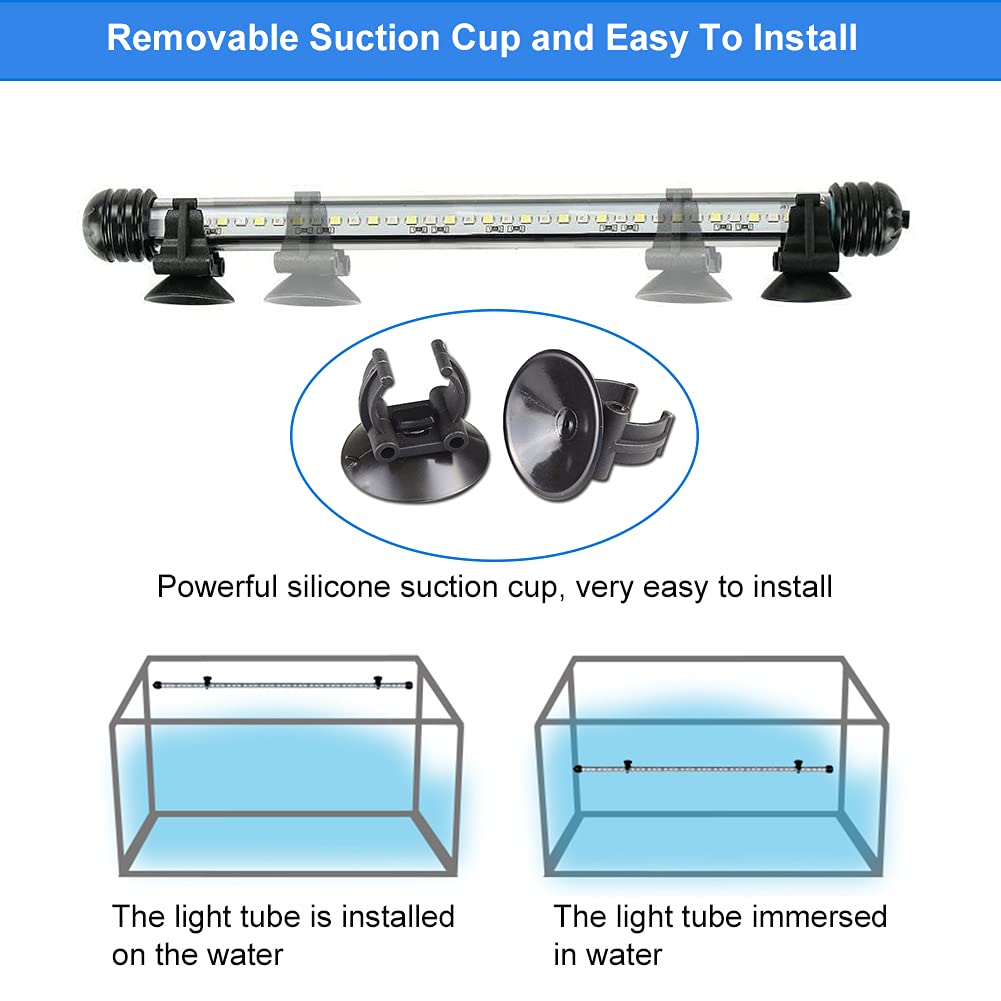 Q: How do I install the aquarium light, and is it easy to set up?A: Installation of the VARMHUS aquarium light is straightforward. It comes with strong suction cups that allow you to securely attach the light to your desired location within the aquarium. Simply clean the area where you intend to place it, attach the suction cups, and connect the power supply.