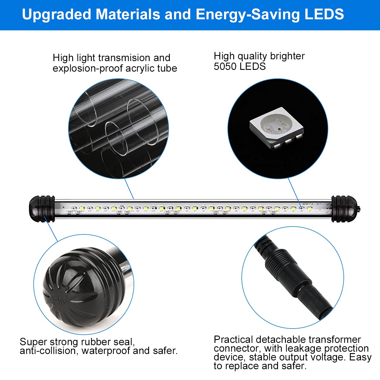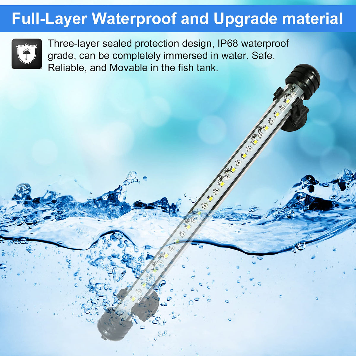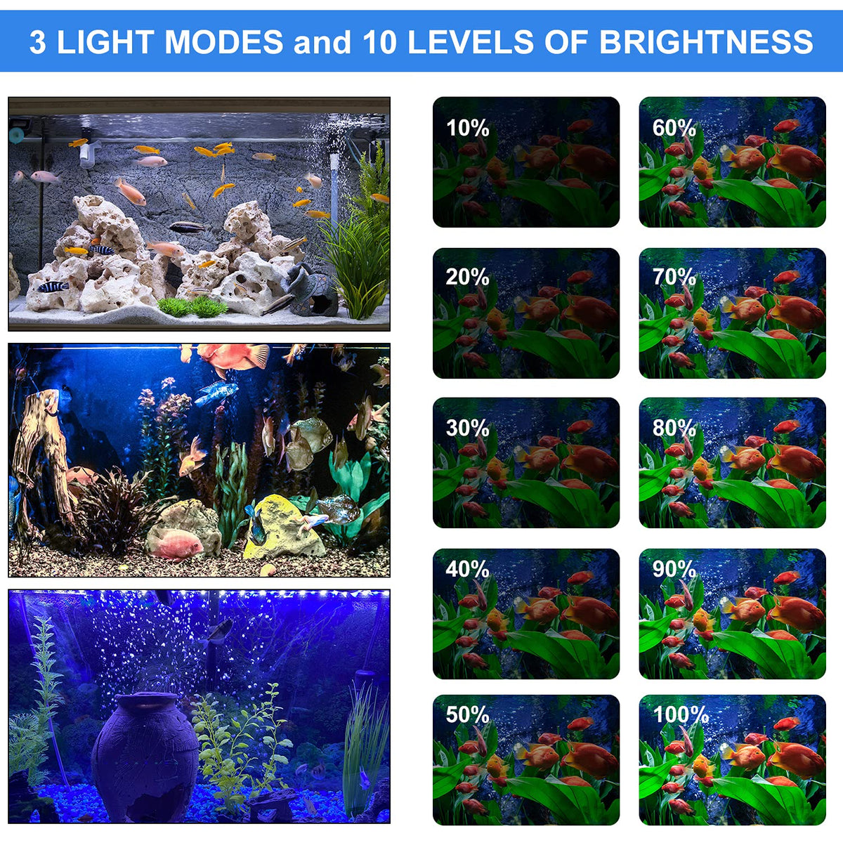Varmhus Submersible Led Aquarium Light,Fish Tank Light With Timer Auto On/Off Dimming Function,3 Light Modes Dimmable White-Blue,10 Brightness Levels Optional&3 Levels Of Timed Loop Function 7.5''