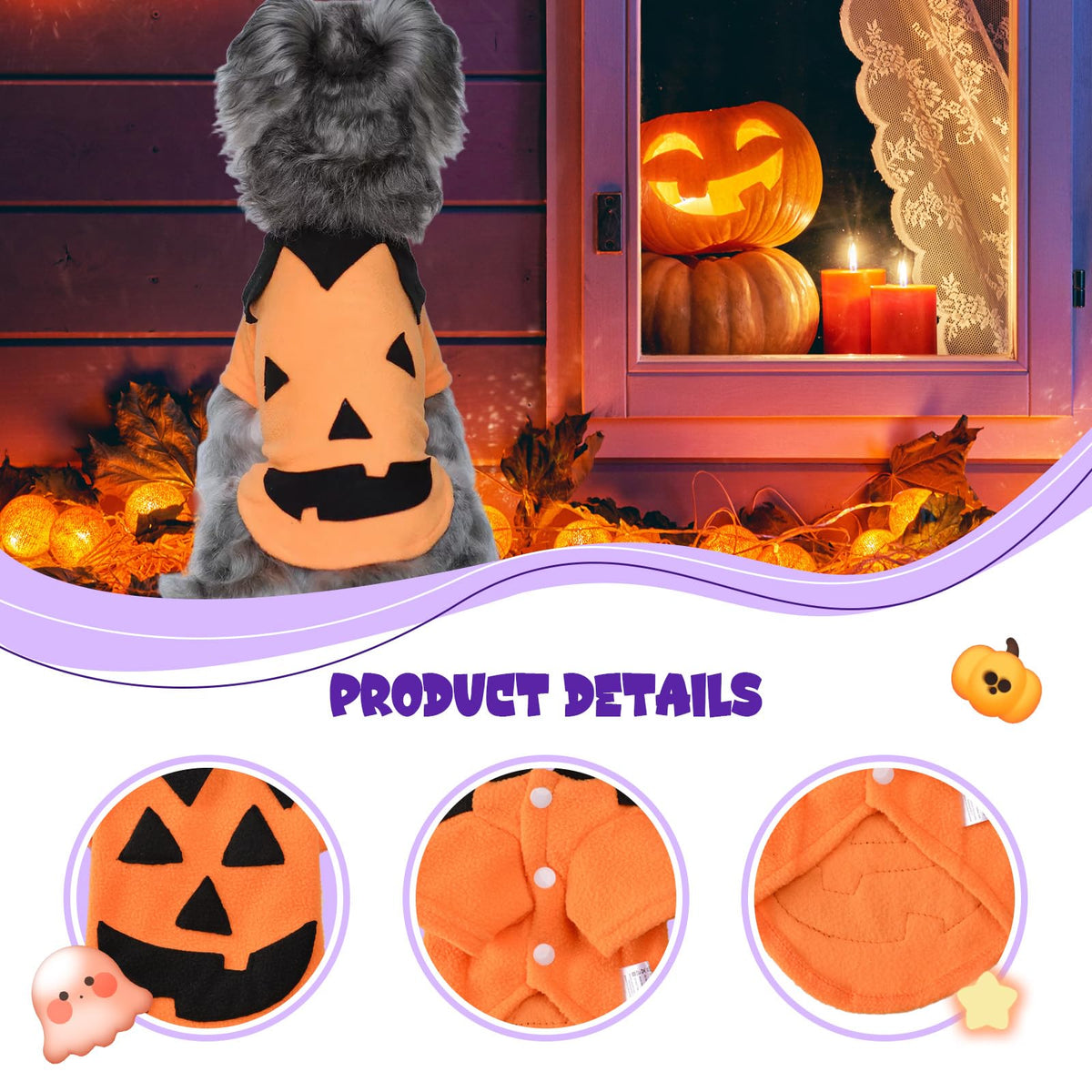 Vavious Cat Sweater - Warm Fleece Dog Jacket, Small Dog Sweater Coat, Cute Pumpkin Buttons, Orange, Large