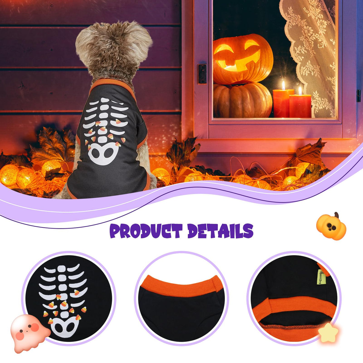 Vavious Dog Winter Coat - Funny White Fish Bone Halloween Pet Sweater - Soft Cotton Dog Clothes - Black X-Small