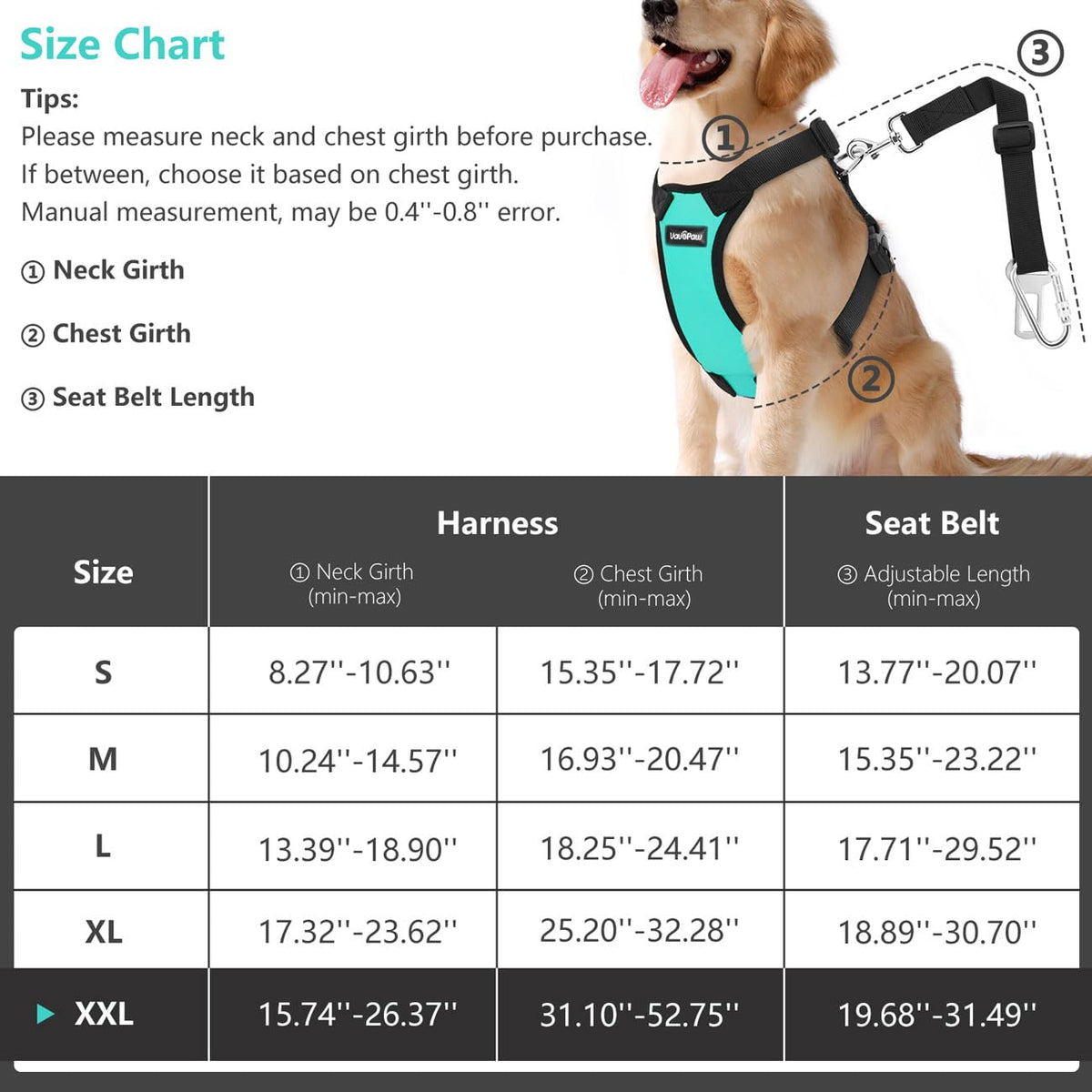 Vavopaw Dog Vehicle Safety Vest Harness, Adjustable Soft Padded Mesh Car Seat Belt Leash Harness With Travel Strap And Carabiner For Most Cars, Xxl Size, Blue