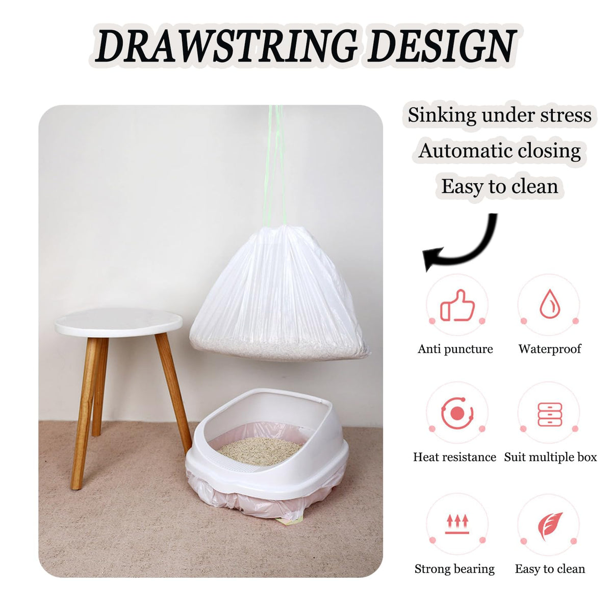 Our Cat Litter Liners Has Jumbo Size The Litter Box Liners Are Large Enough For Daily Life. We Provide Quality Bags In Various Sizes. Easy To Use In Daily Life, Avoid Direct Contact With Cat Litter And Cat Excrement, And Do Not Need To Clean The Litter Box. When Replacing Cat Litter, Simply Lift The Drawstring Of The Litter Bag And The Drawstring Will Automatically Retract Due To The Weight Of The Litter, Making It Convenient To Use. You Only Need To Scoop The Litter Regularly And Do Not Need To Replace The Litter Frequently.