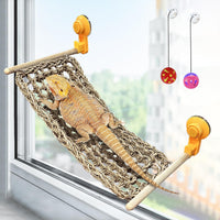VCEPJH Bearded Dragon Window Perch Reptile Window Hammock Natural Seagrass Lizard Lounger Bed with Powerful Suction Cups Climbin