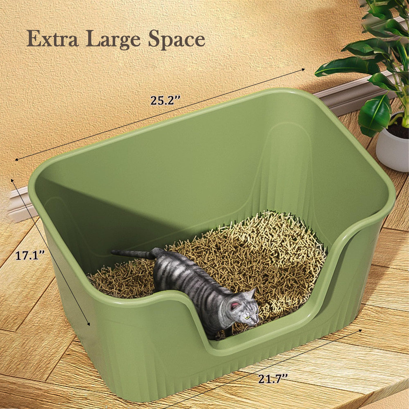 Vealind High Sided Large Cat Litter Box with for Indoor Cats XL Cat Litter Tray for Big Cats or Multi-Cats Household (25''*17''* 13'' Green)