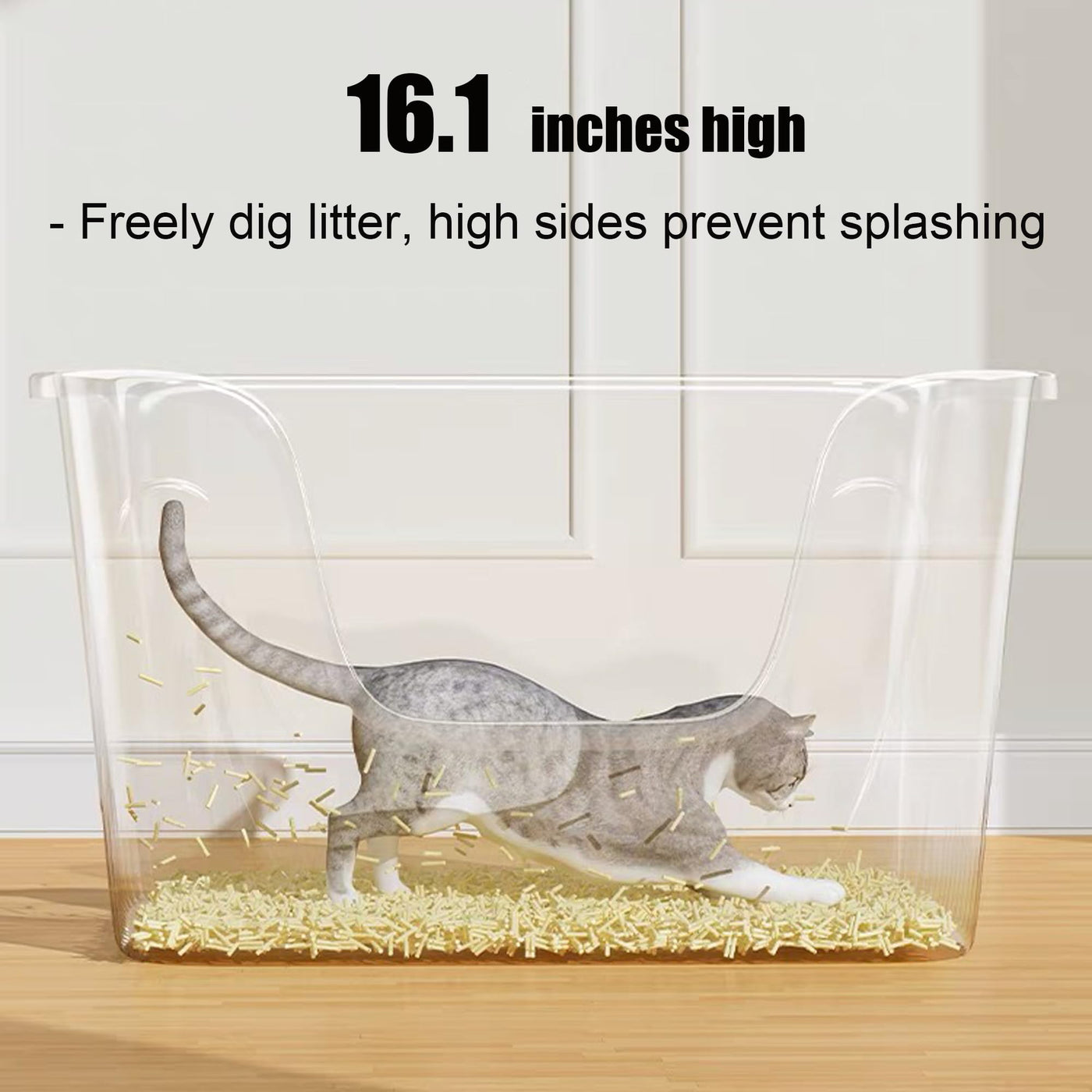[High Wall Litter Box] The super high sides effectively prevent litter from falling preventing cats from peeing outside the litter tray and can greatly reduce pet parents' cleanup chores. The tall litter box also provides privacy for the cat!