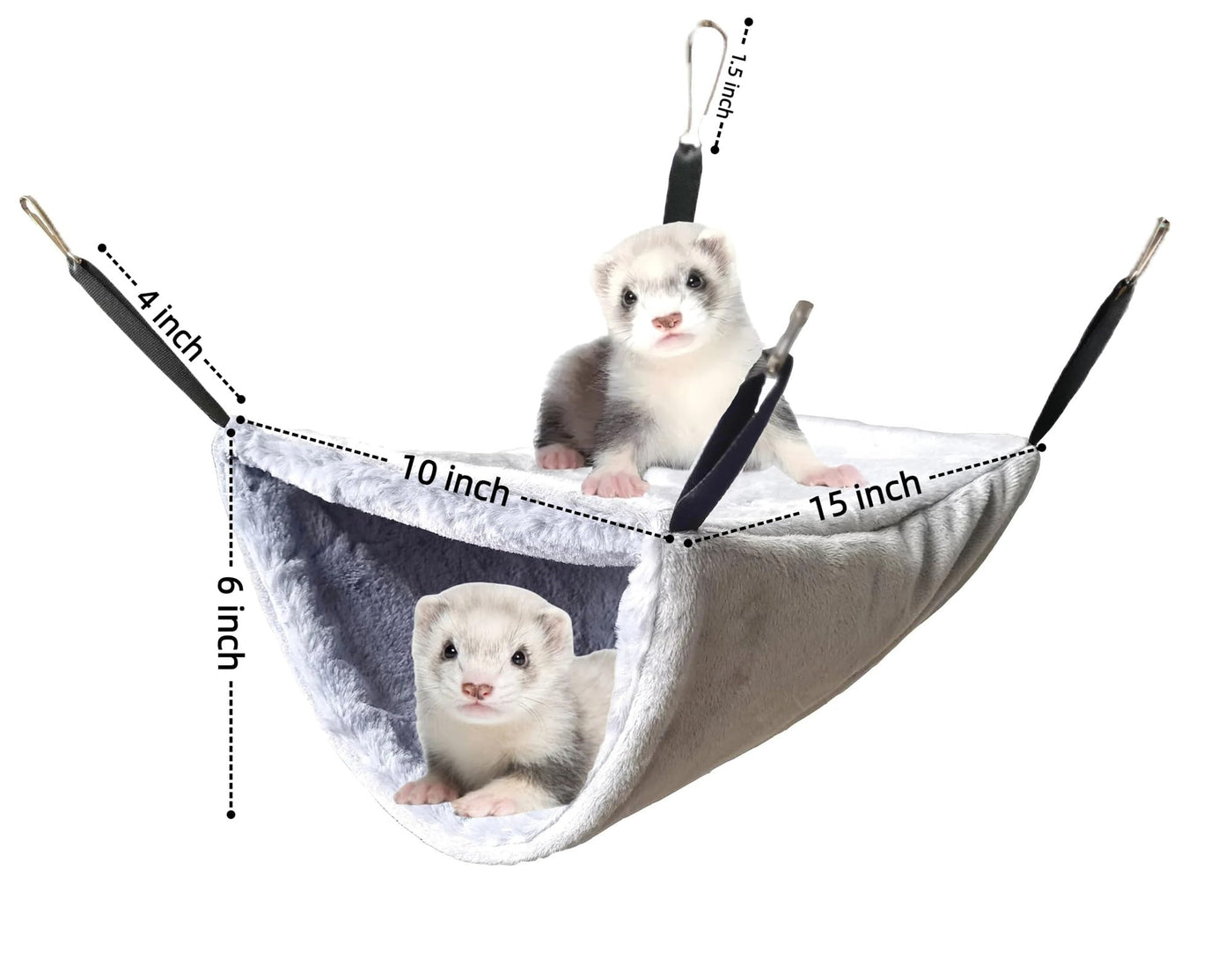 Vedem Small Animal Soft Plush Bunkbed Hammock Cage Hanging Tunnel Hideout For Ferret Chinchilla Rat (Medium, Grey)